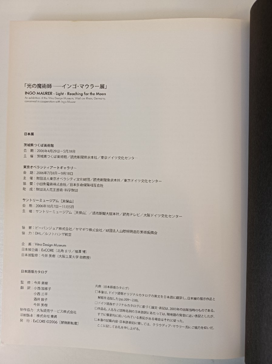 光の魔術師 インゴ・マウラー展/INGO MAURER LIGHT-REACHING FOR THE MOON 2006/光の詩人/日本語版/カタログ/デザイナー/照明/B3501130