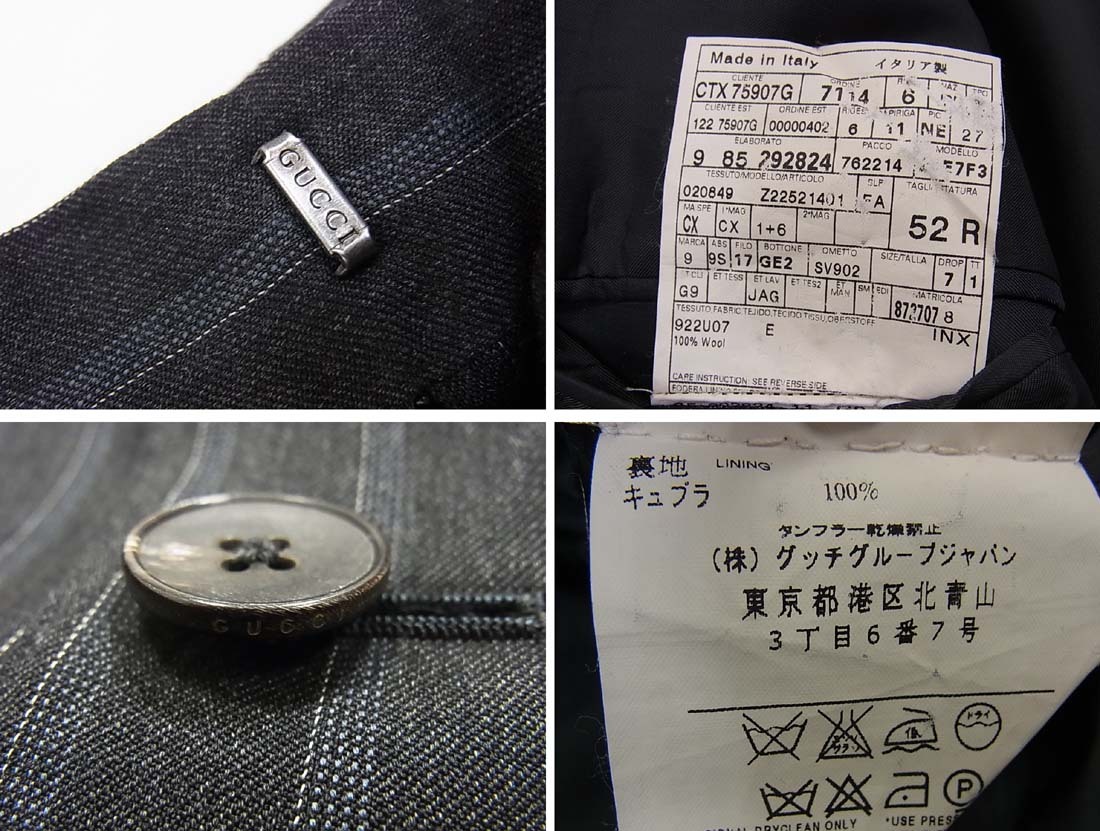 美品 定価40万 トムフォード期◇GUCCI グッチ シングルスーツ ジャケット パンツ セットアップ ストライプ メンズ 美シルエット イタリア製