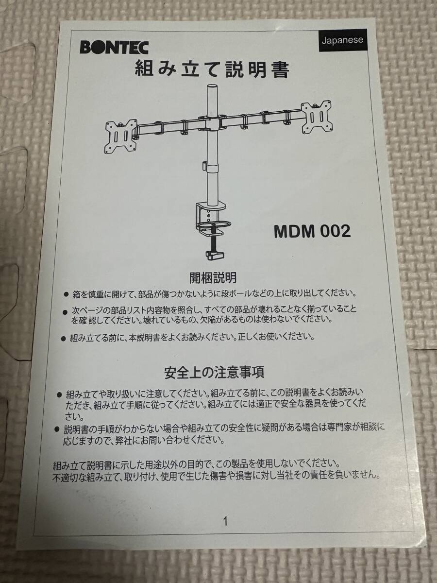 BONTEC MDM002 モニターアーム デュアル 13-27インチ対応 液晶ディスプレイアーム VESA:75x75mm 100x100mm フルモーション調整 アーム 2画面 グロメット式&クランプ式 耐荷重10Kg(各アーム) 黒 になります。