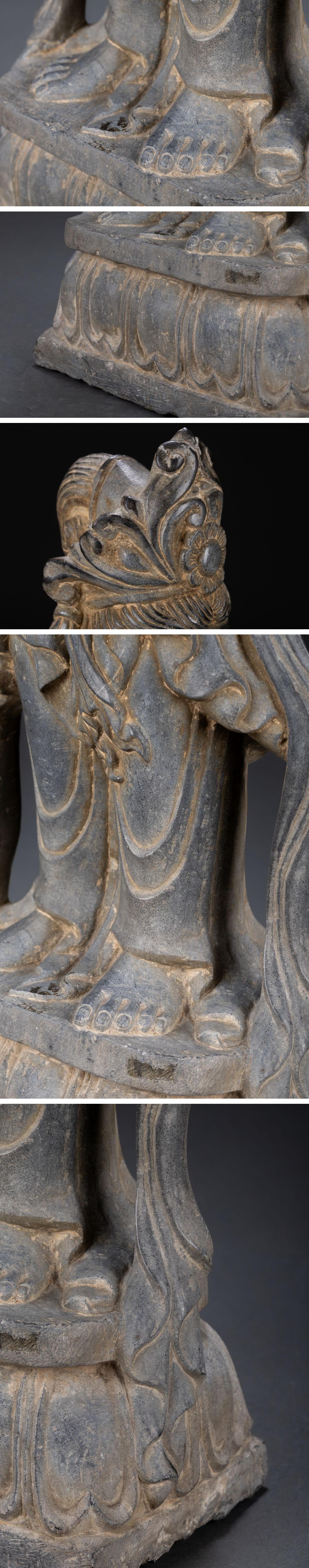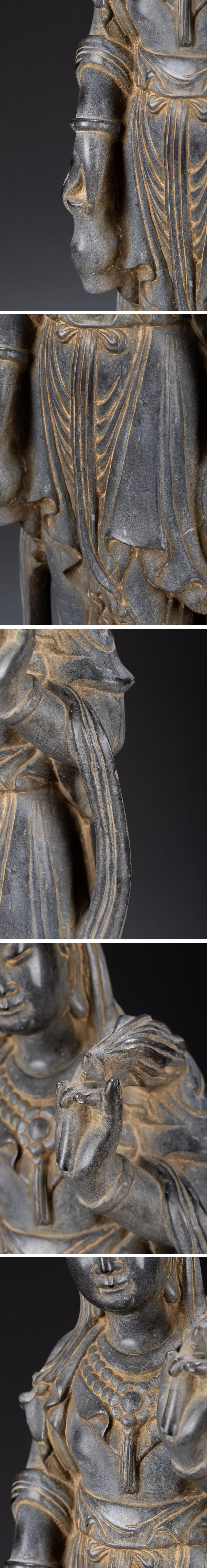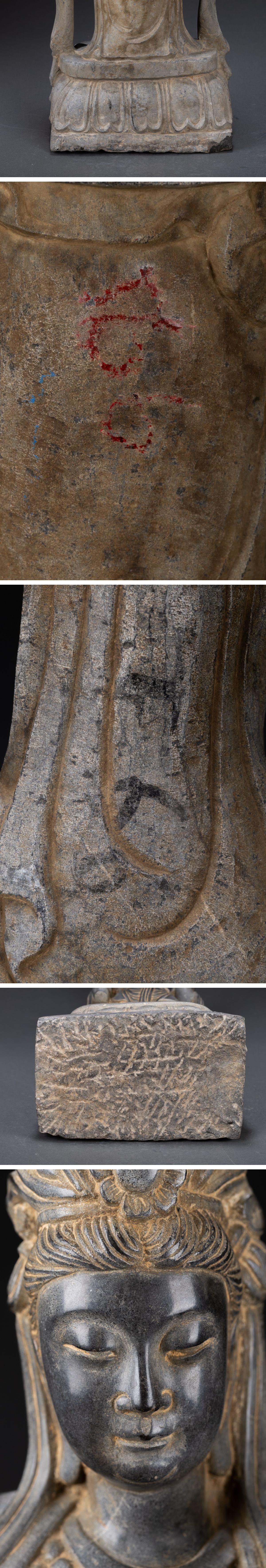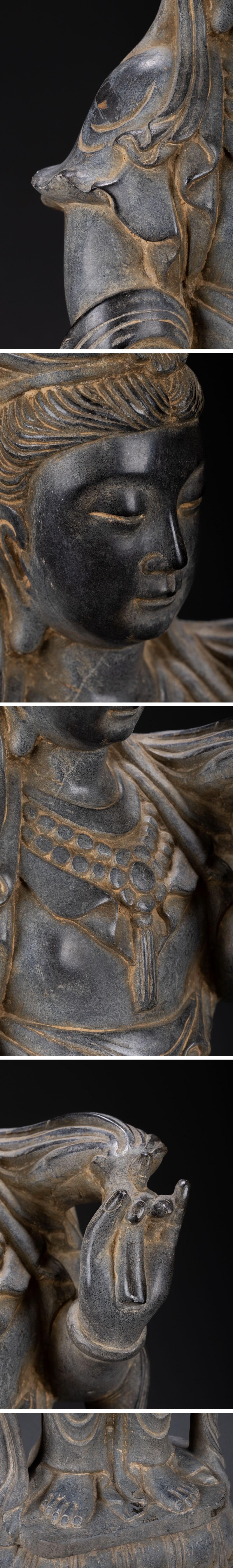 【雲錦】某有名オークション購入 唐時代 青石 観音菩薩造像24.6㎏ 当時物 古置物 古美術 時代コレクション7L10-282S6