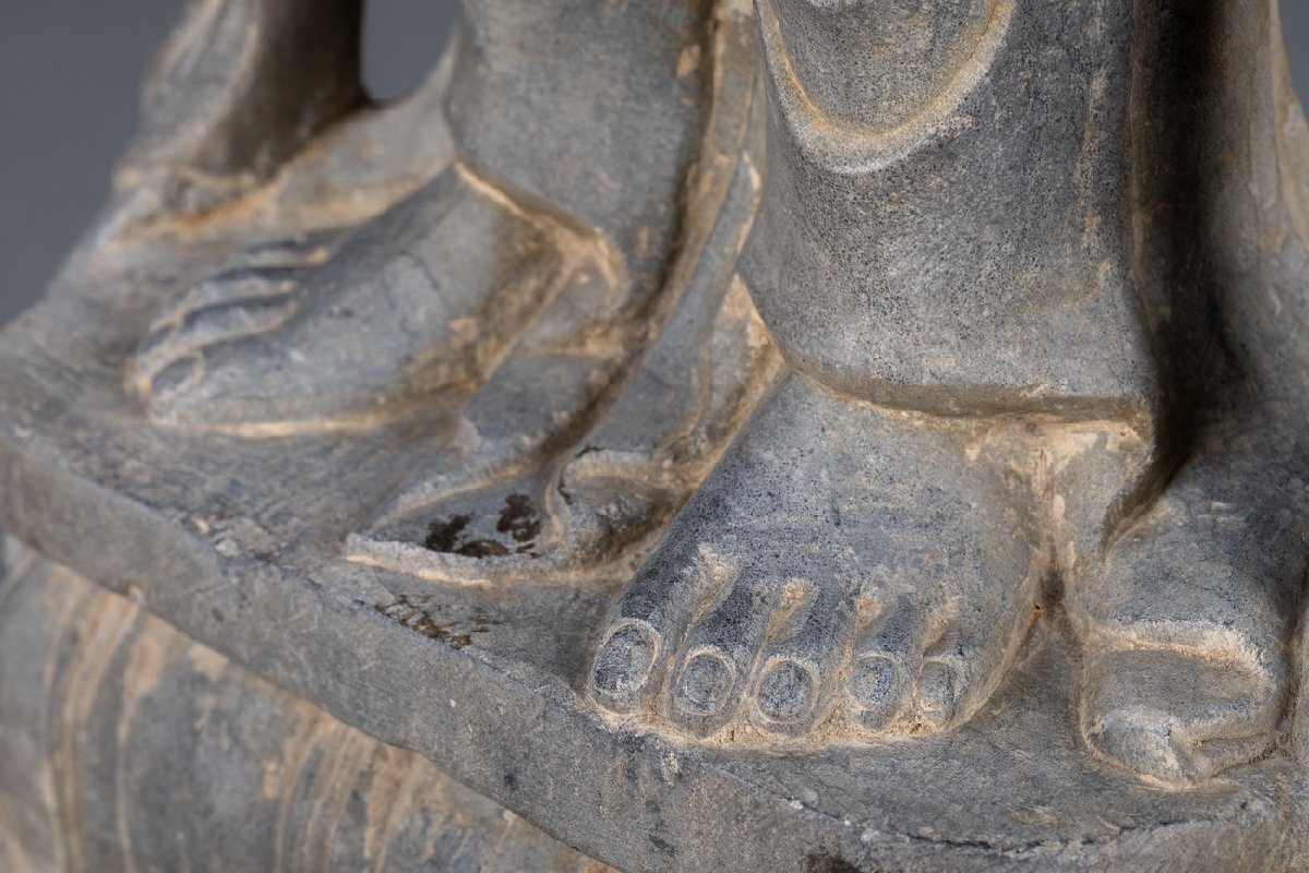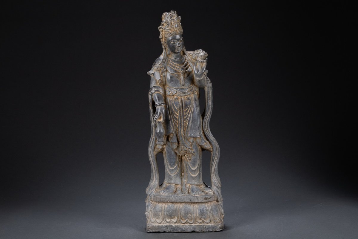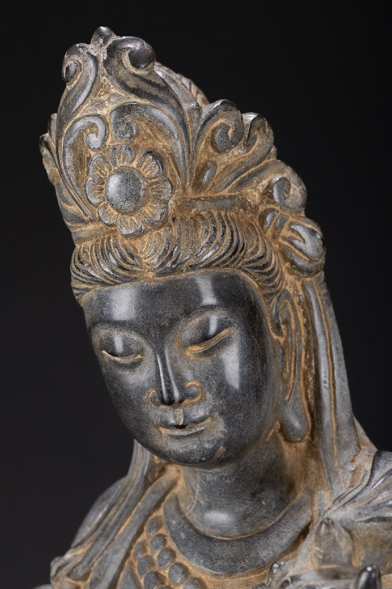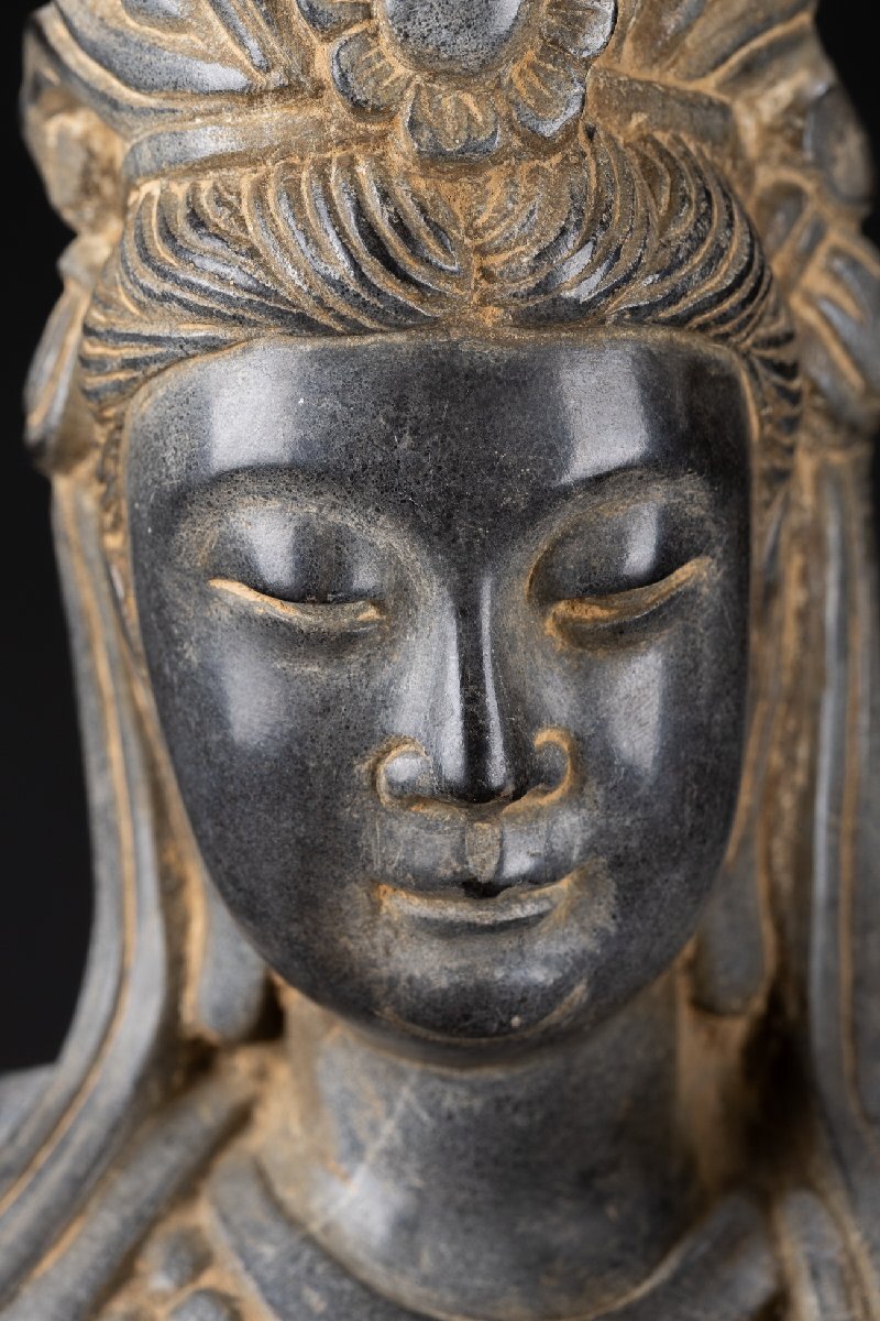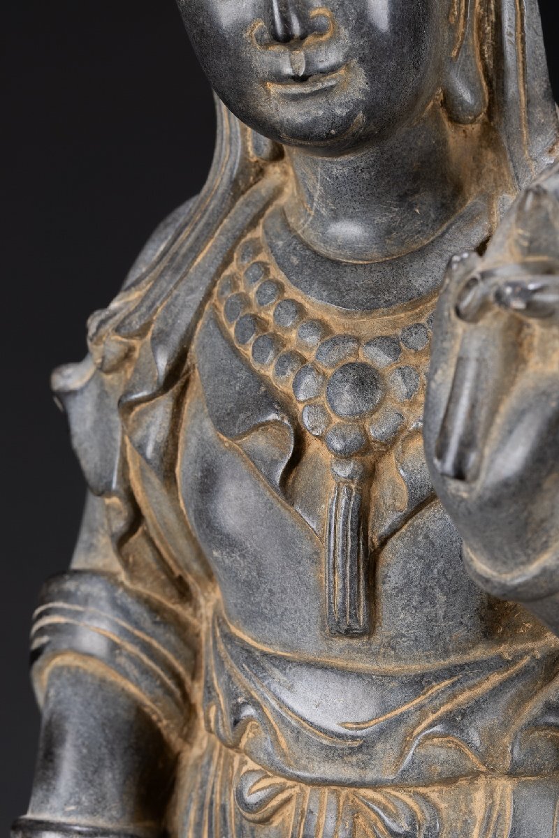 【雲錦】某有名オークション購入 唐時代 青石 観音菩薩造像24.6㎏ 当時物 古置物 古美術 時代コレクション7L10-282S6