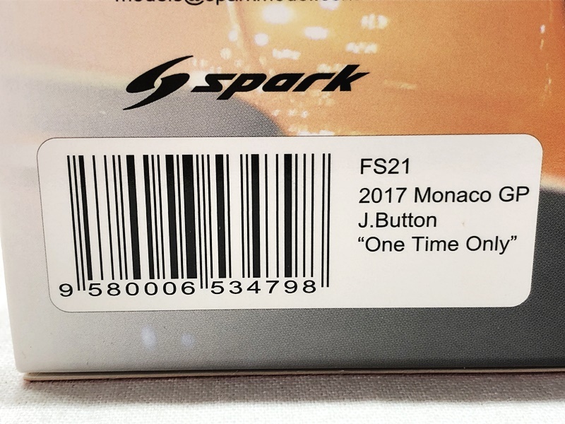 スパーク 1/43 モナコGP 2017 J.バトン One Time Only FS21 ※補足参照・破損あり・開封品・現状販売品 ミニカー 1円スタート★S