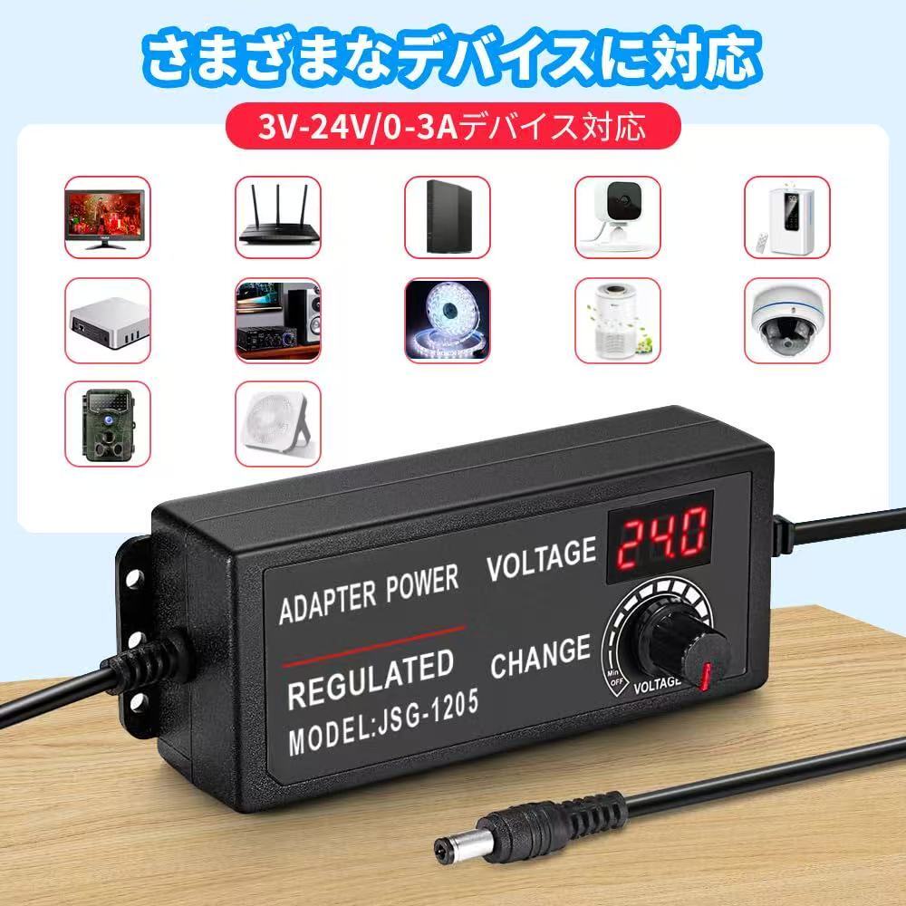 マルチ 電源 AC アダプター72W 3A マルチ ボルト DC 3~24V アダプター 3A 電源アダプター LCDディスプレイ搭載 3V 4.5V 5V 6V 7.5V 9V 12V