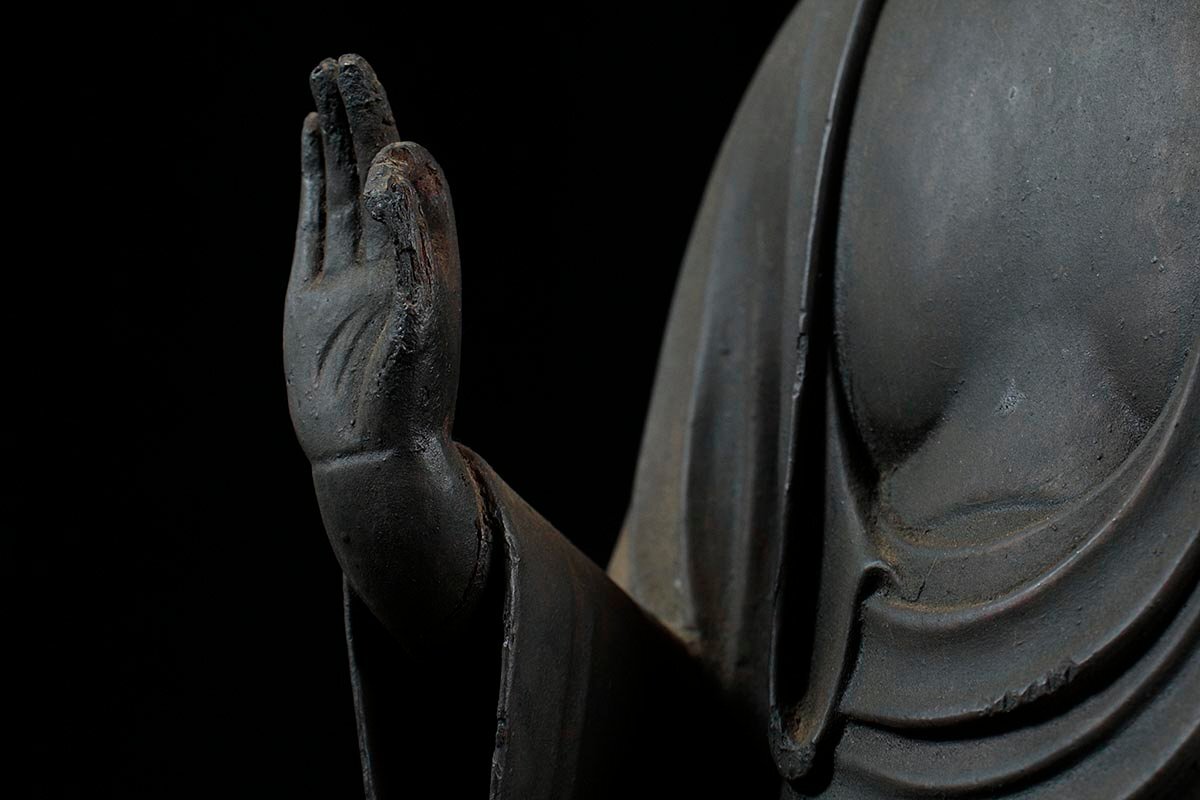 | ◆ 鎌倉時代 仏師造 玉眼 漆箔木造「阿弥陀如来立像」両脇侍内扉絵厨子入 全体高80.7cm 仏全高73.5cm 仏高44.8cm 仏教美術 ◆