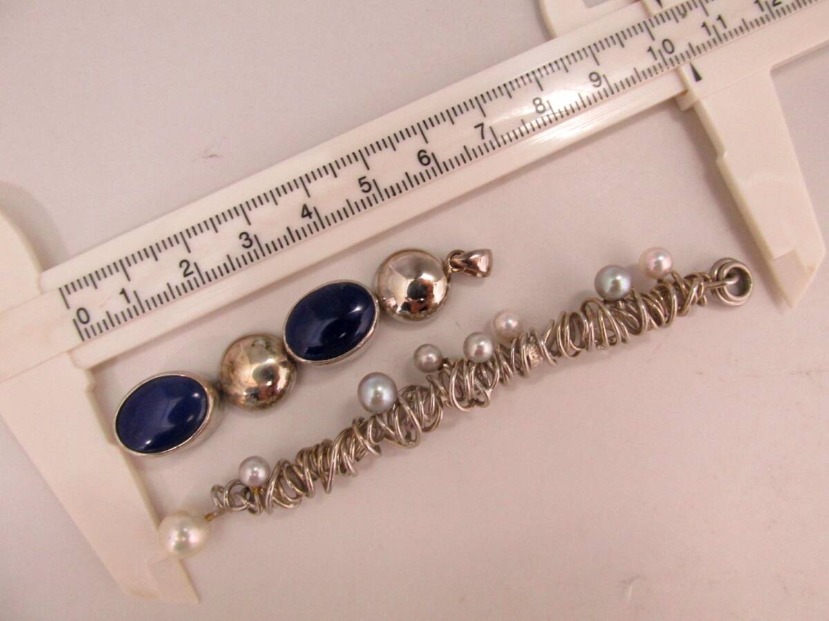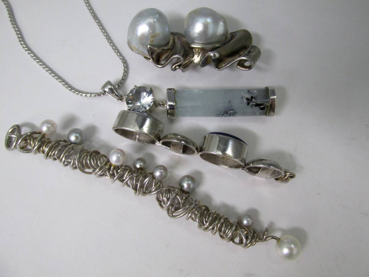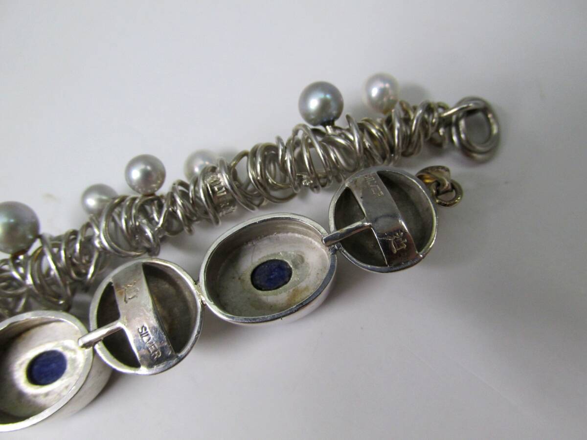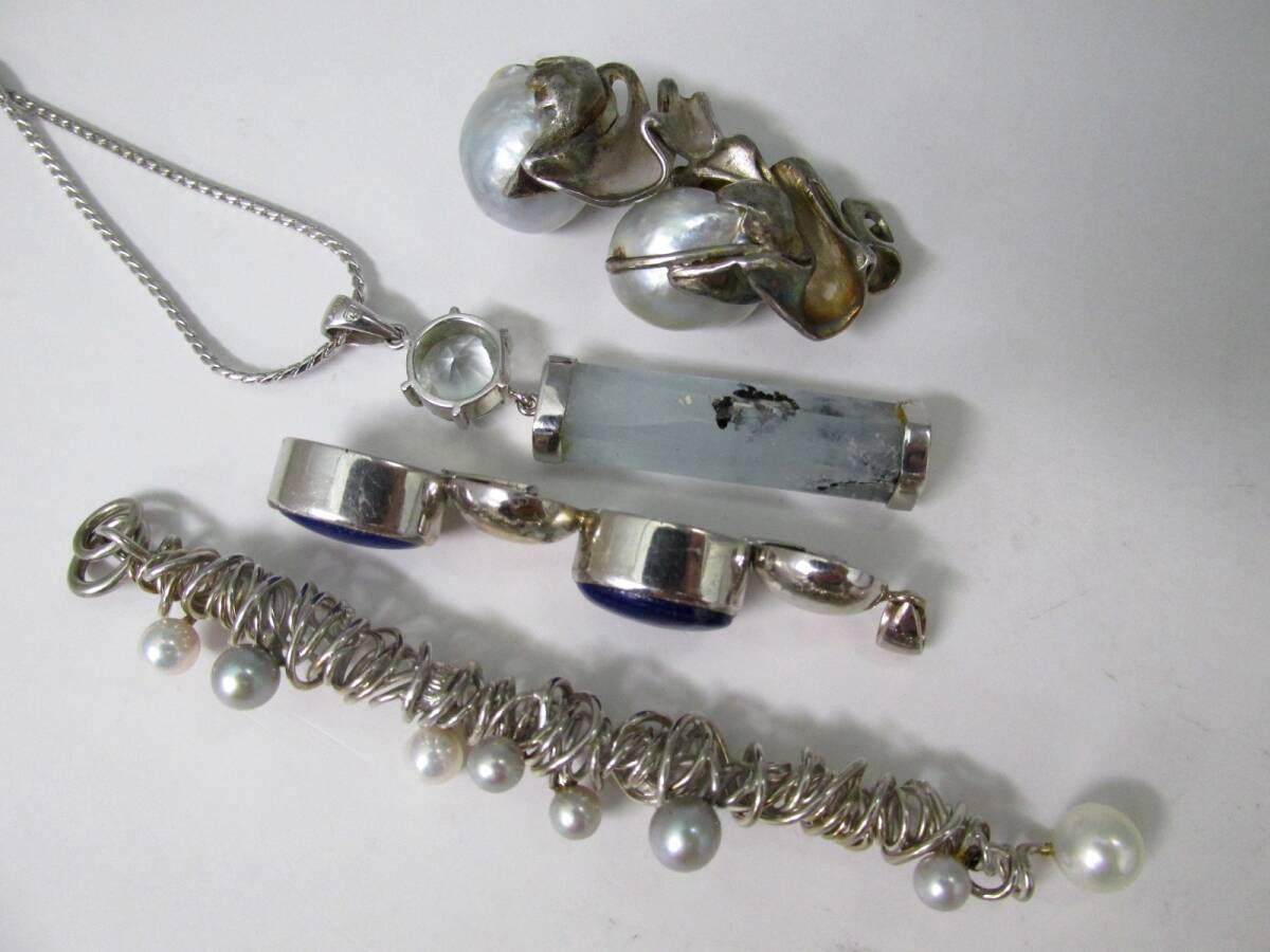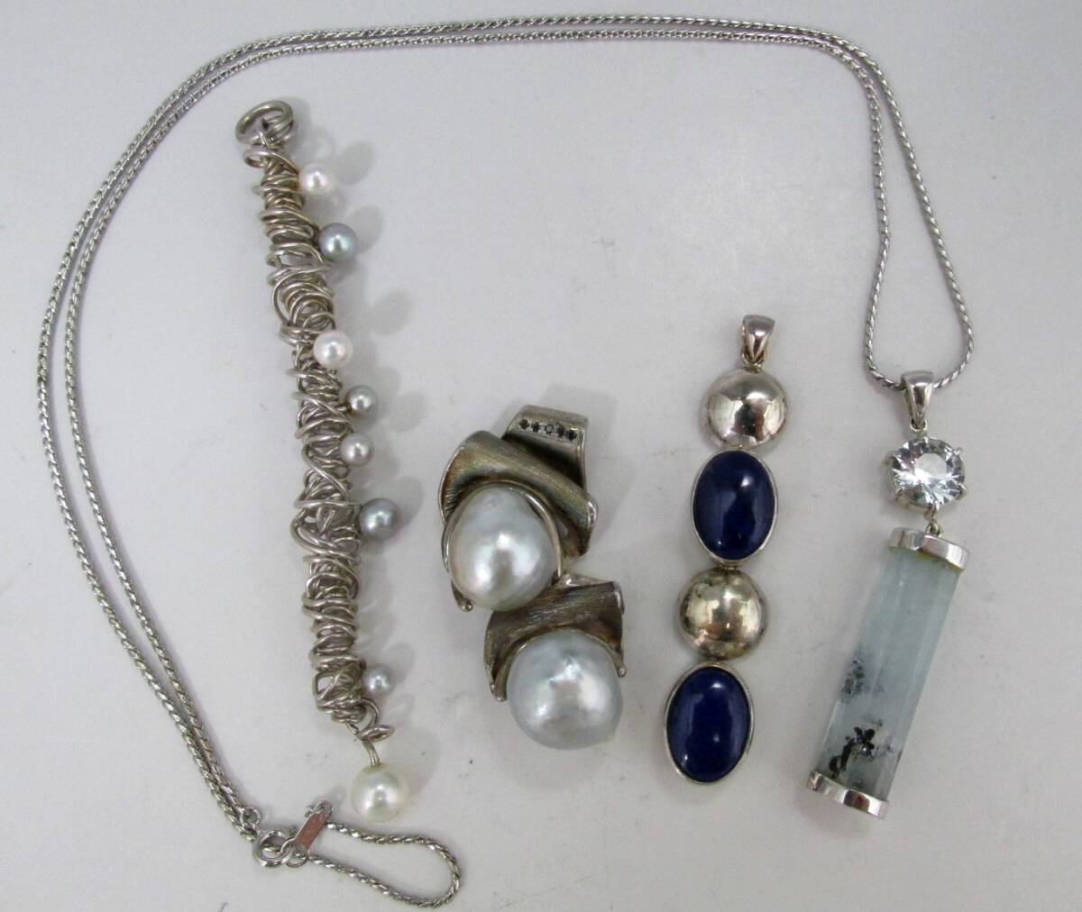 ⑩SILVERアクセサリー 4点組 SILVER/迪 刻印有★ペンダントトップ×4 チェーン×1 淡水/バロックパール ラピスラズリ 水晶 ワイヤーアート