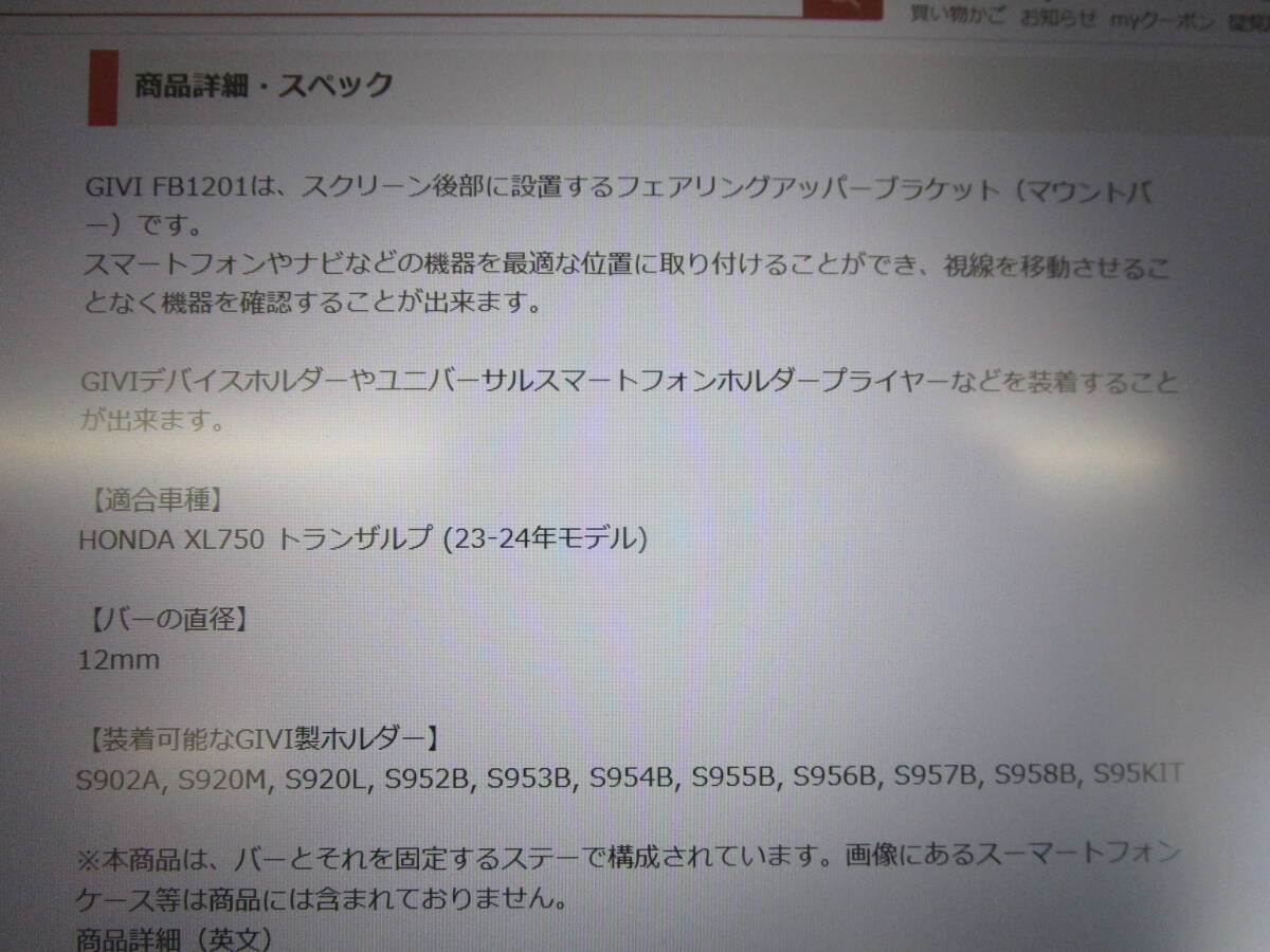 XL750トランザルプ用 GIVIスクリーンステー 中古品です。