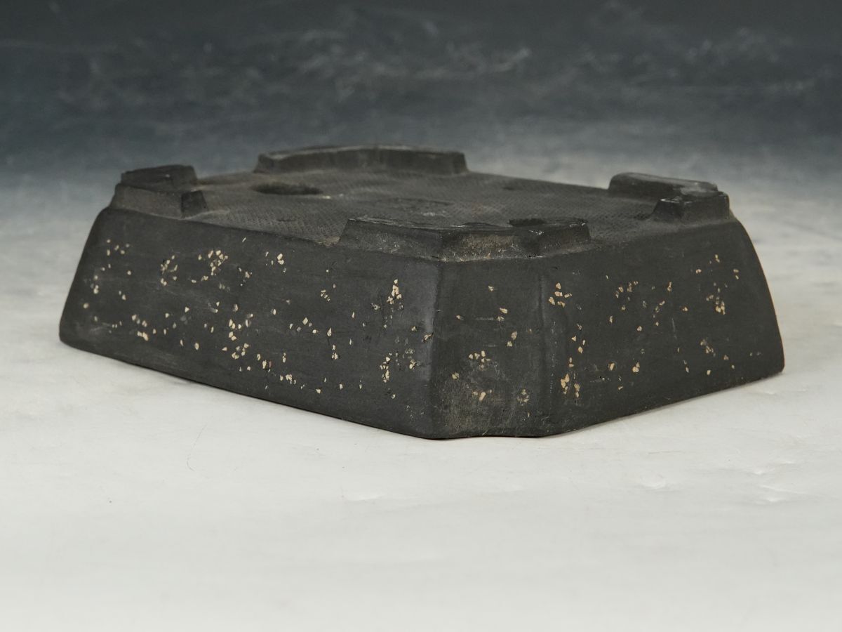 【ISBS】人気京焼作家 平安虹泉作「虹泉梨皮泥切立隅入切足長方鉢」 泥味最高 土目抜群 精巧な成形 間口約17.2cm[Y2025111707]