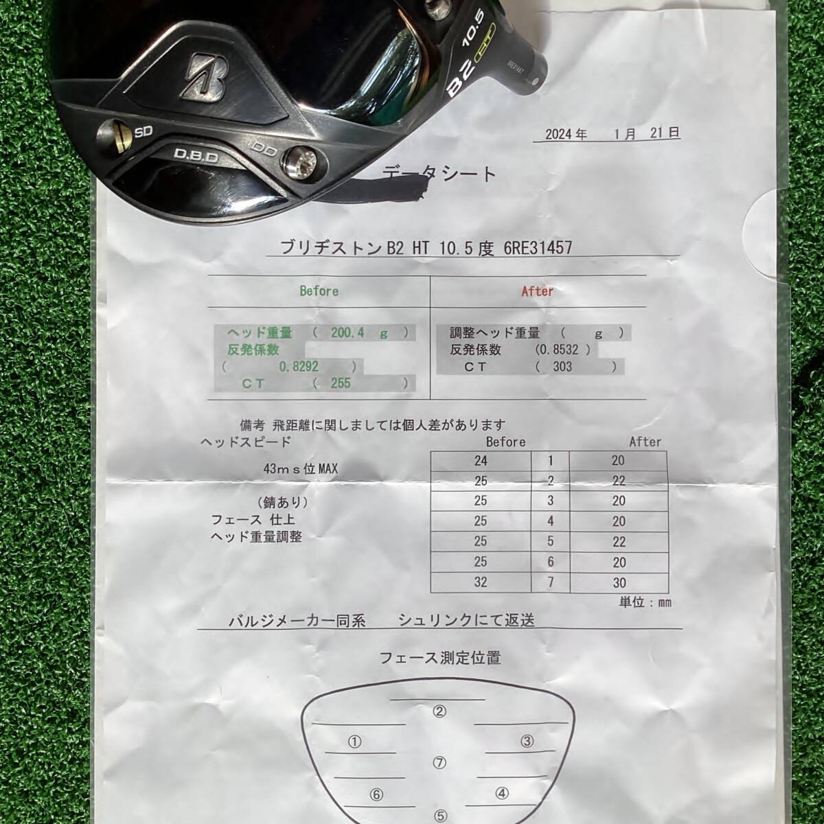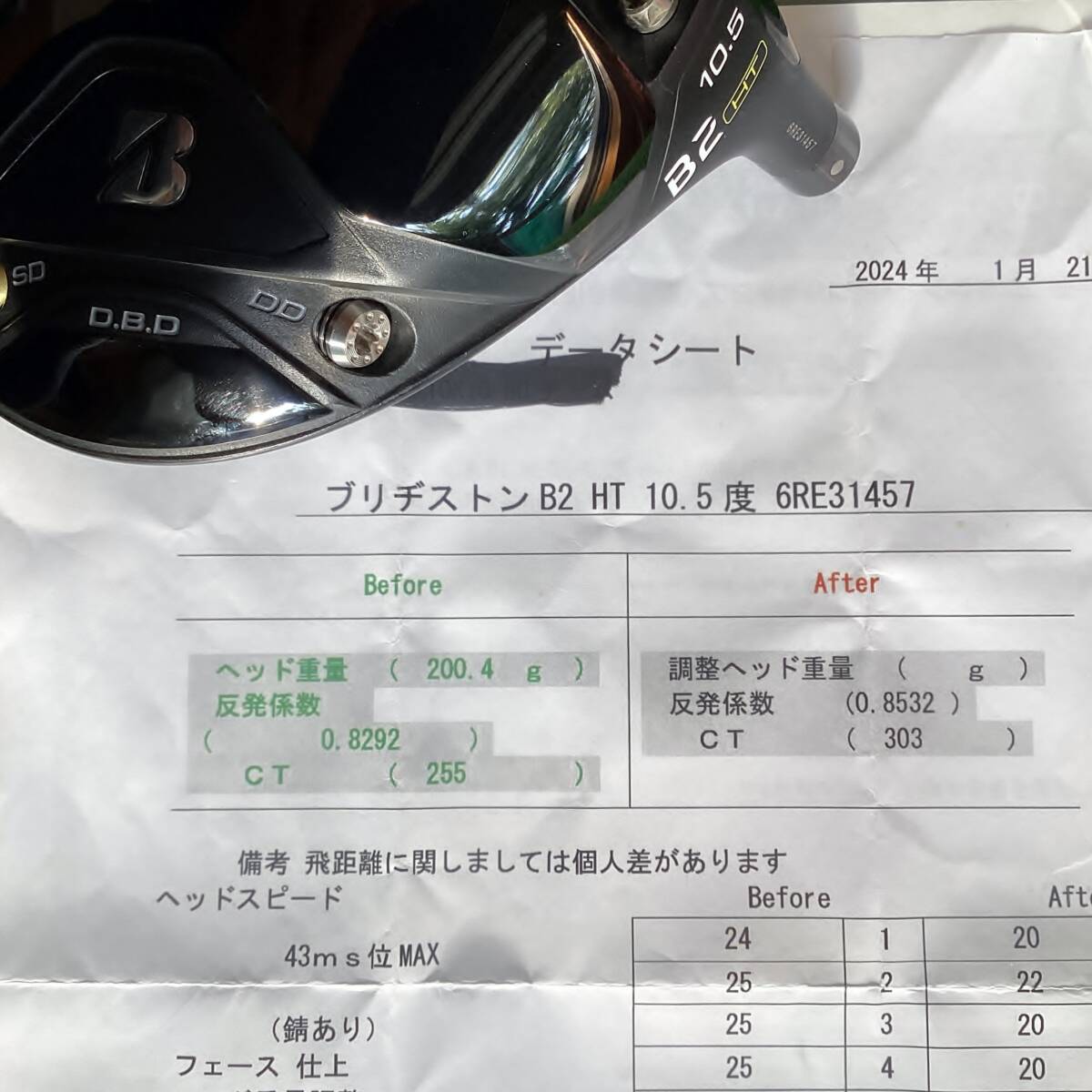 高反発加工済み☆CT値303★10.5度★ブリジストンゴルフドライバー☆B2HTヘッドのみ★新品ヘッドカバー付き