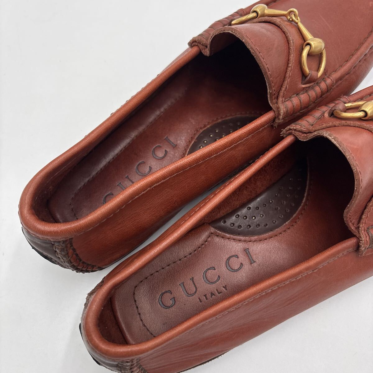 A ■ イタリア製 '名作!! ホースビット装飾' GUCCI グッチ 本革 ローファー 革靴 ドライビングシューズ 41M 26cm メンズ 紳士靴 ブラウン系