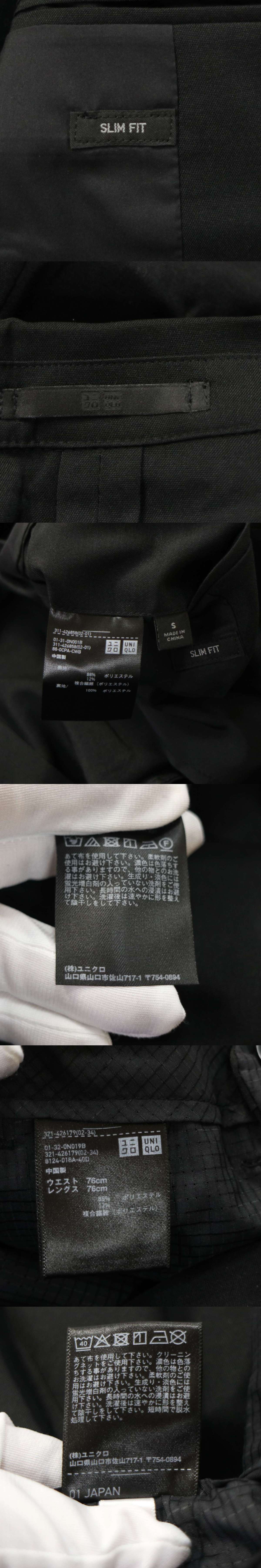 | UNIQLO ユニクロ 春夏 感動ジャケット&パンツ★ ウールライク ストレッチ セットアップ スーツ Sz.S メンズ 黒 I5T00859_3#M | |||