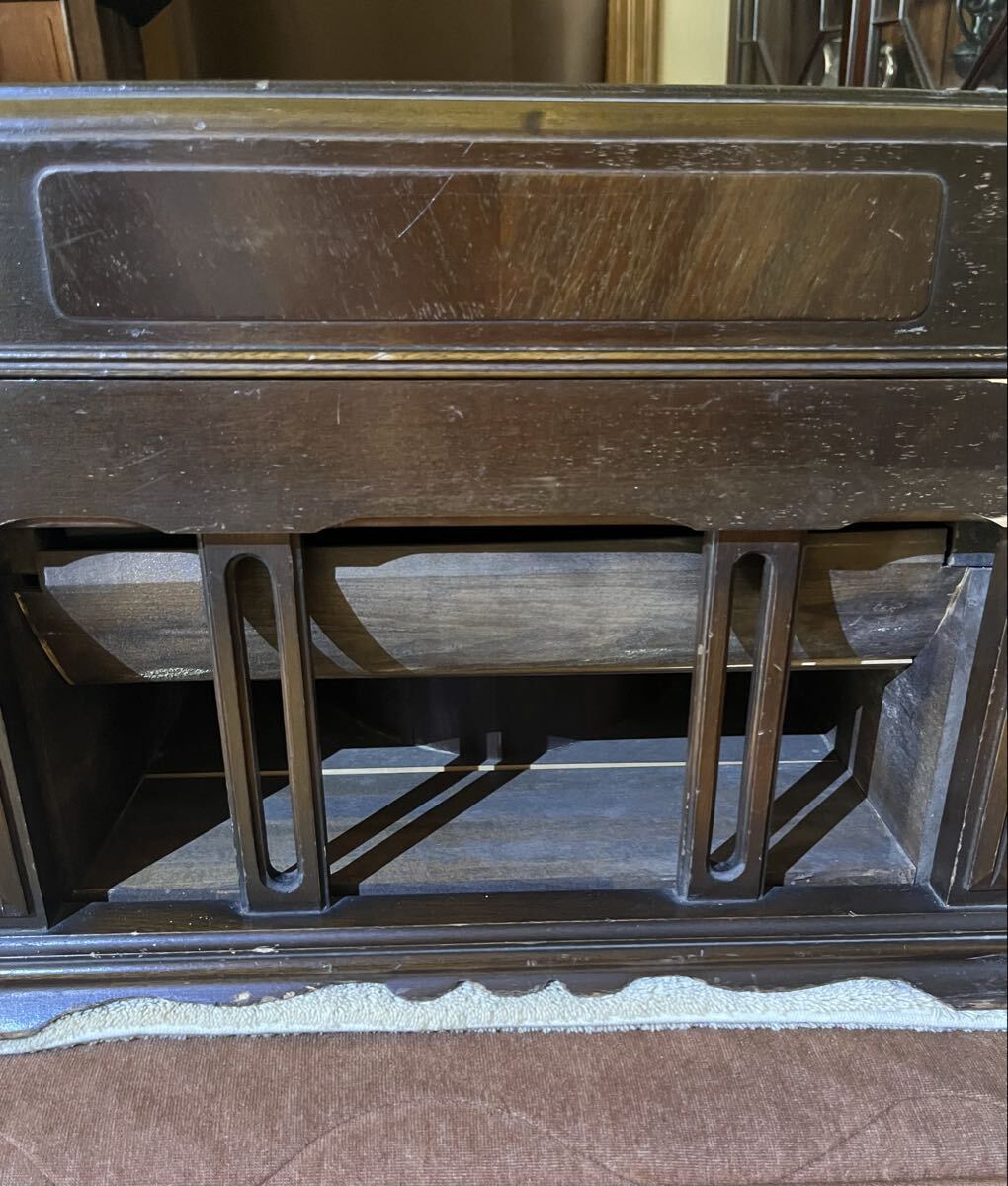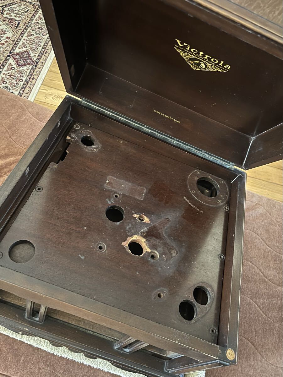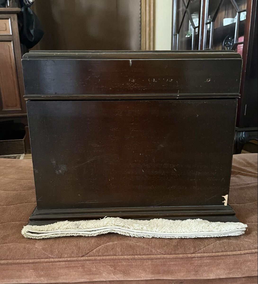 出品は蓄音機ケースのみになり、画像周辺部のその他のものは含まれません。