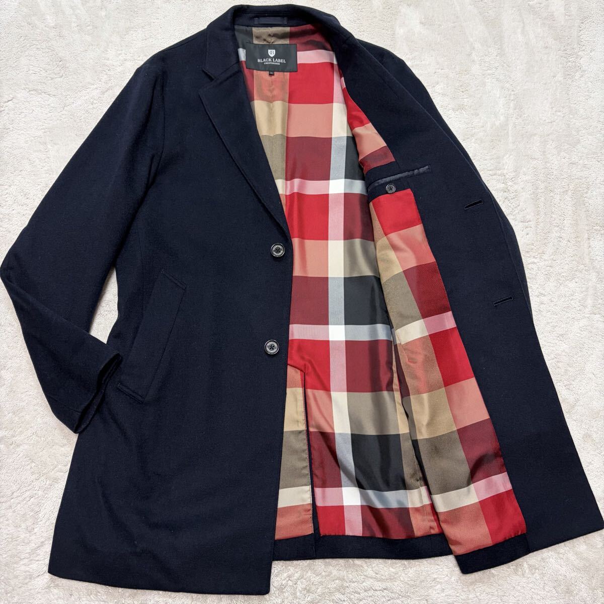 未使用級!/カシミヤ混/XLサイズ●ブラックレーベルクレストブリッジ BLACK LABEL CRESTBRIDGE チェスターコート チェック ロング アウター