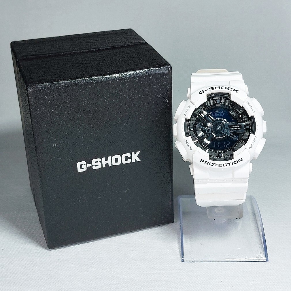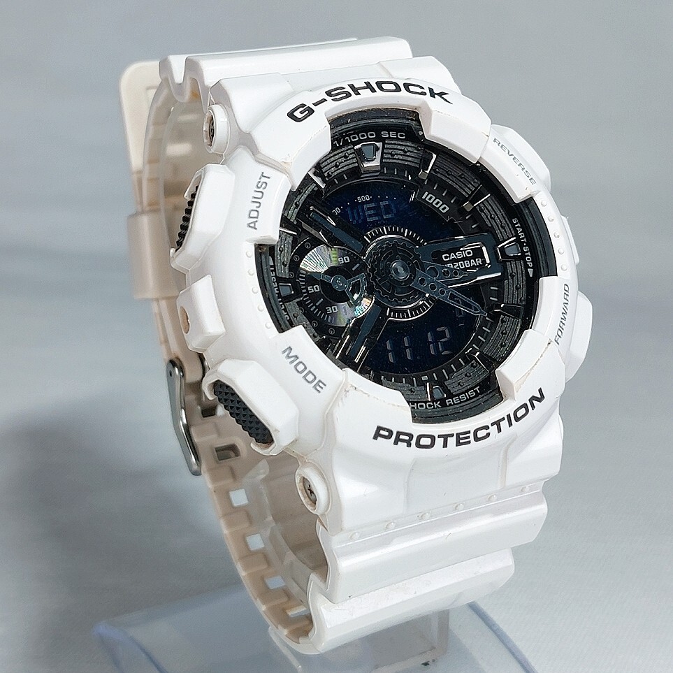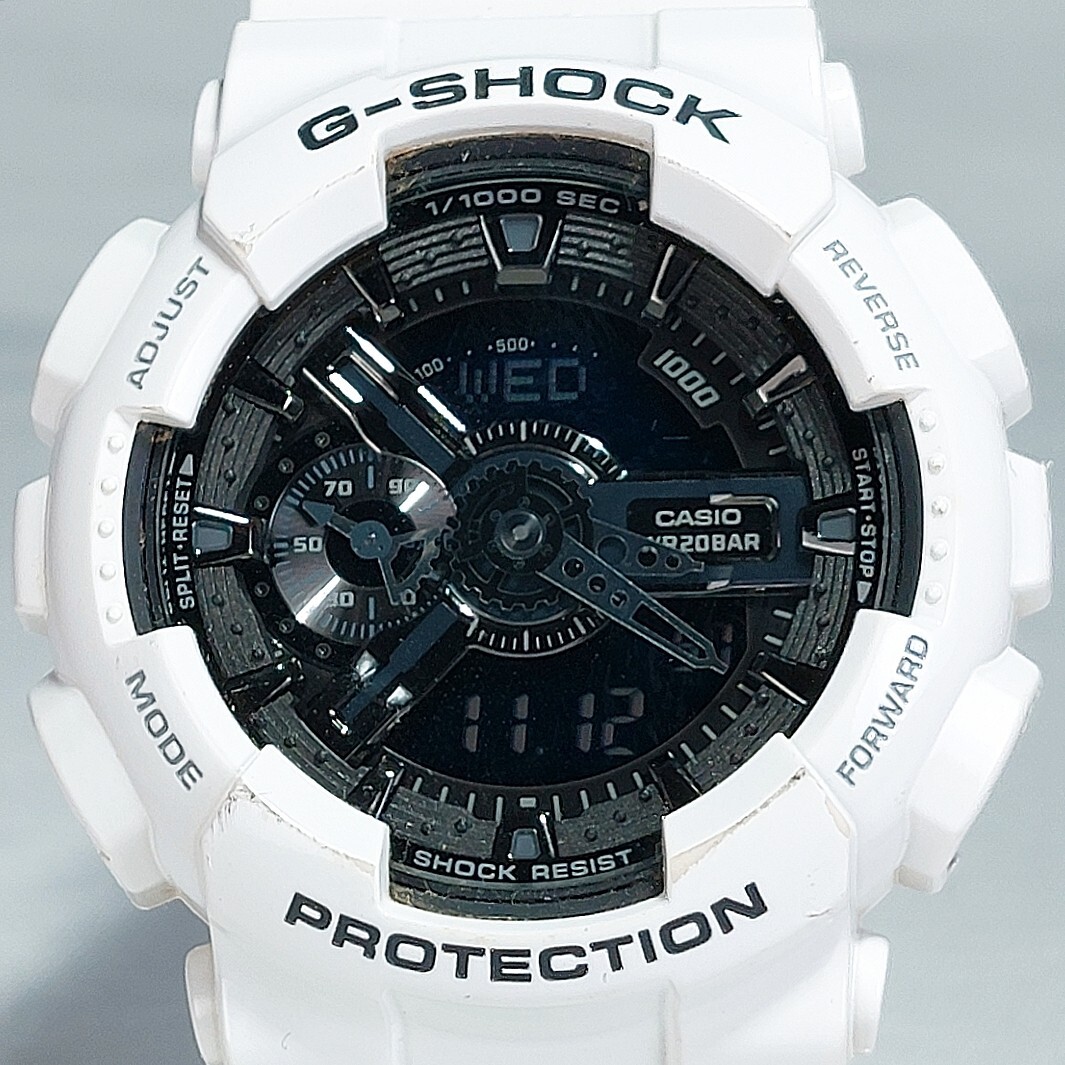 美品 CASIO カシオ G-SHOCK ジーショック 腕時計 GA-110GW-7AJF クオーツ ラウンド カレンダー ホワイト ブラック アナデジ 動作確認済
