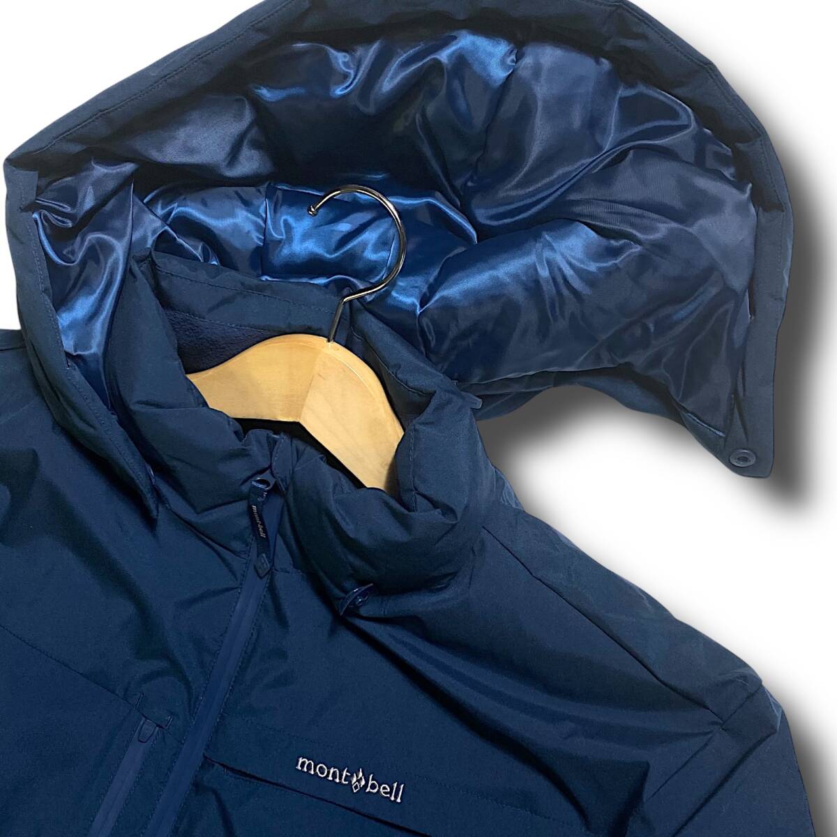 新品 mont-bell モンベル 定価4.9万 撥水 防風 防寒 保温 高機能中綿 止水ジップ 2way フード付き エコダウンジャケット ブルゾン XXL 紺 P