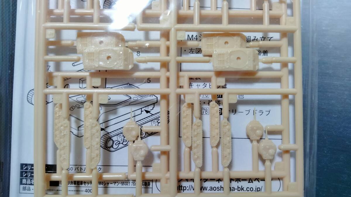 新品未開封のアオシマの「アメリカ軍戦車セットA M4シャーマン M4A1 76mm長砲身」です