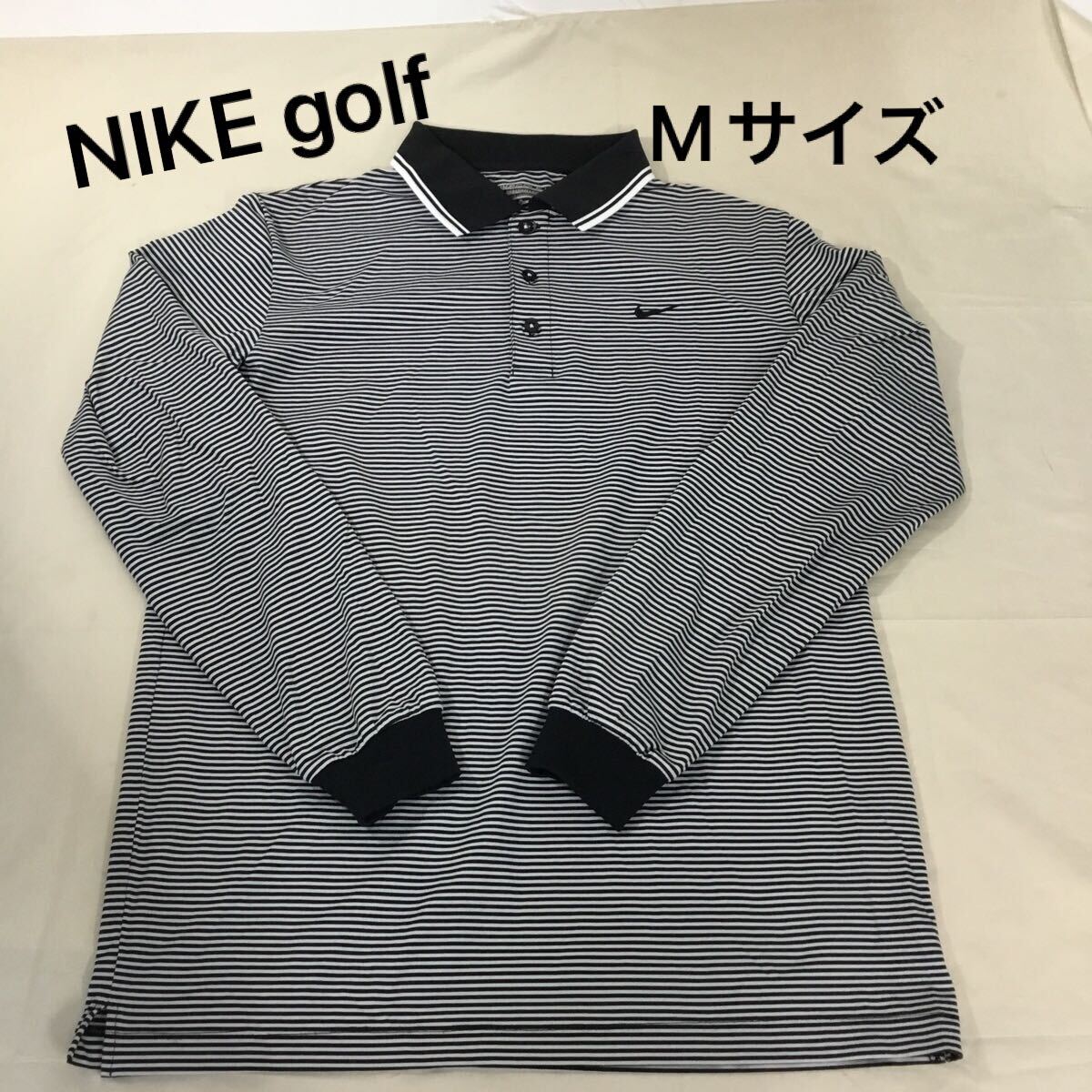 19. NIKE GOLF ナイキ 長袖ポロシャツ Mサイズ ボーダー 黒 ポロシャツ ゴルフウェア メンズ 冬用 ナイキゴルフ