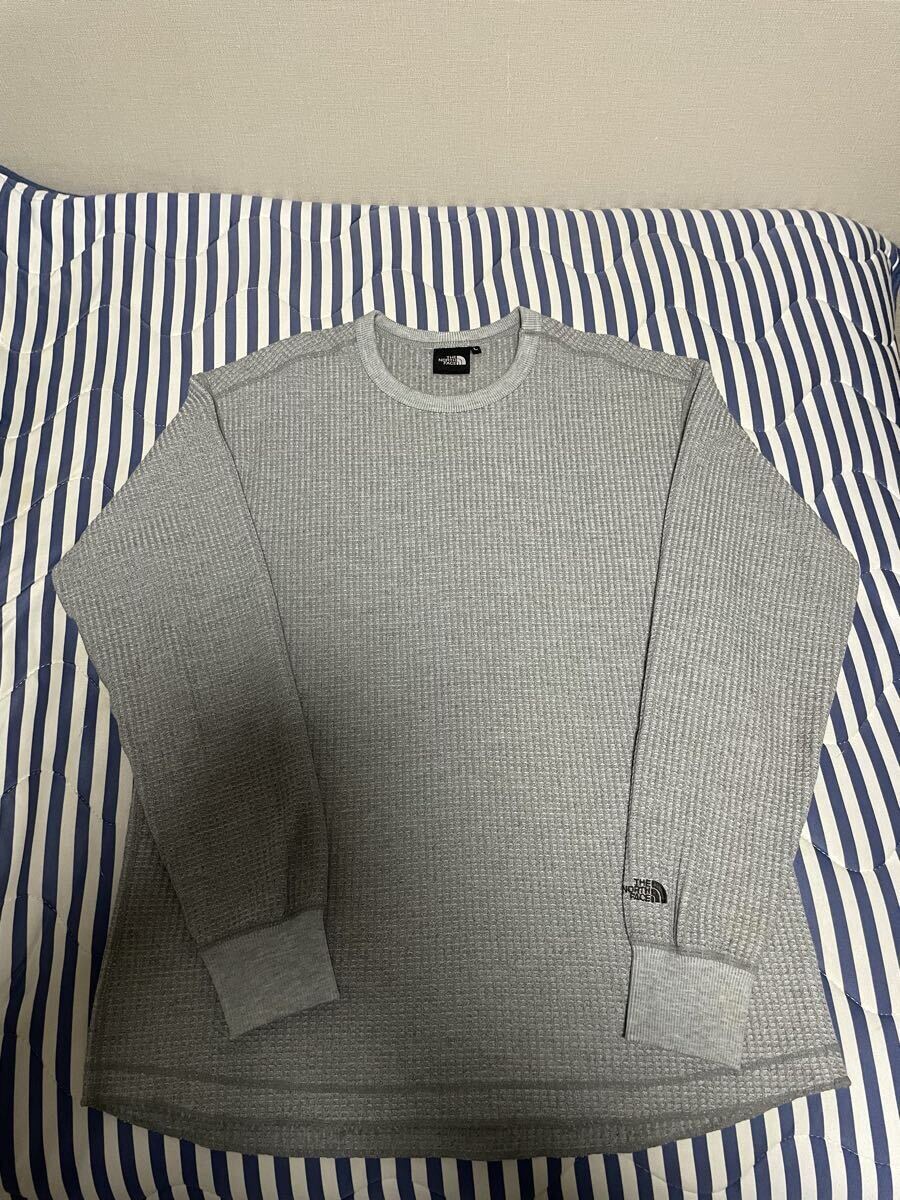 美品 ノースフェイス サーマル ロンT THE NORTH FACE ロゴ 長袖 Tシャツ カットソー グレー スウェット トレーナー
