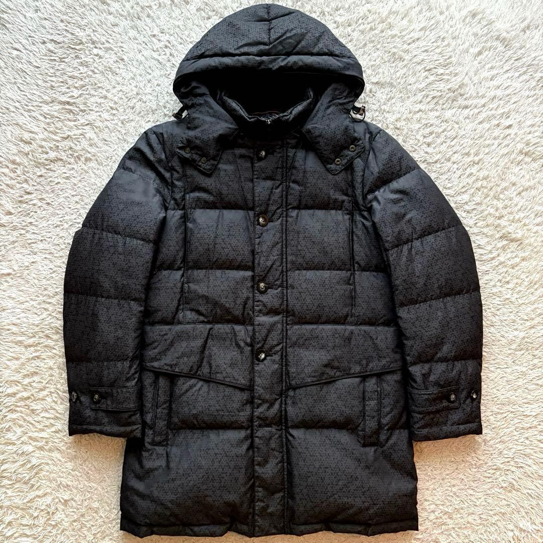 ★総柄 Lサイズ★ INTERMEZZO ダウン ジャケット 総柄 インターメッツォ ジップアップ フード取り外し可 黒 ブラック 灰色 グレー メンズ