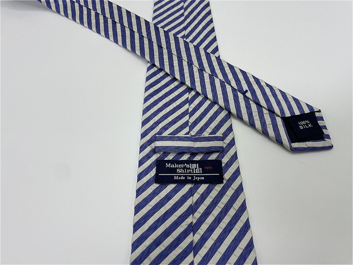 【超美品】メーカーズショーツ鎌倉 レジメンタル柄 ネクタイ 3本以上 送料無料 メンズ ブルーグレイ 1102068