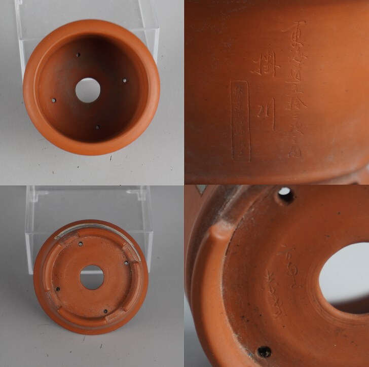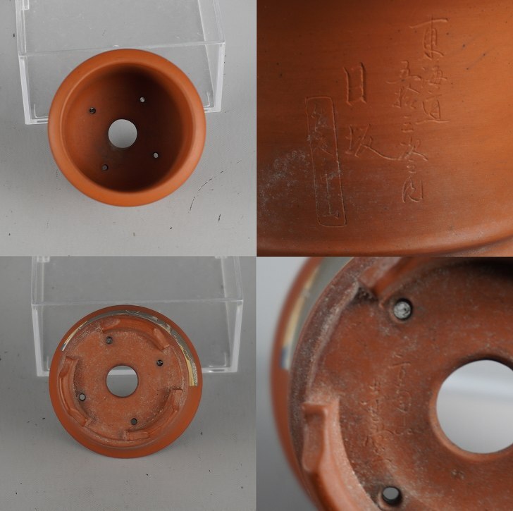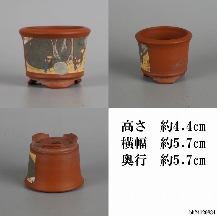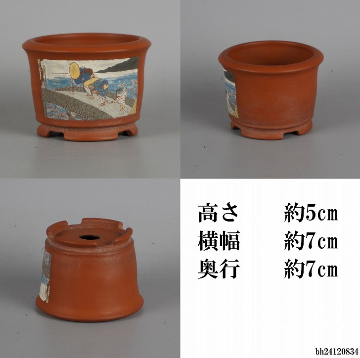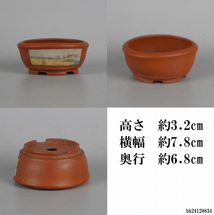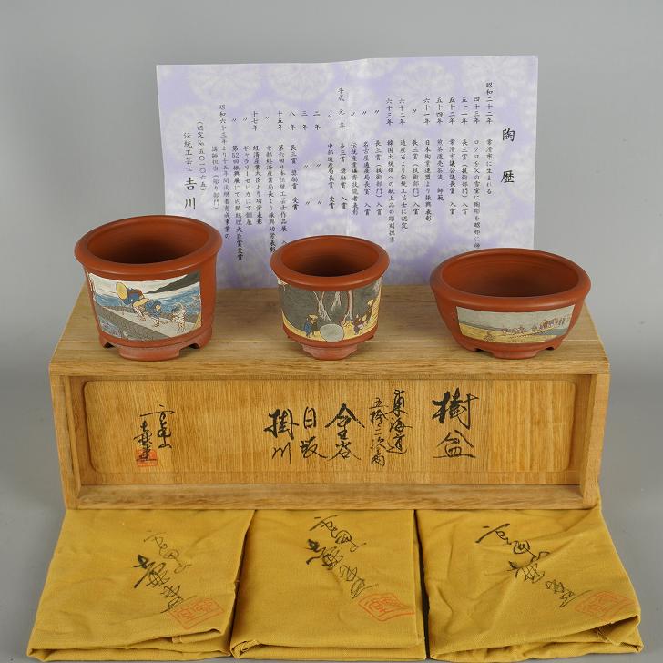 盆栽鉢 吉川壺堂 3点セット 小鉢 長辺 約7.8cm 丸鉢 楕円鉢 色絵 東海道 五拾三次 観賞用 現品 中古鉢