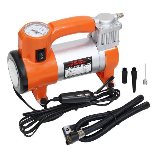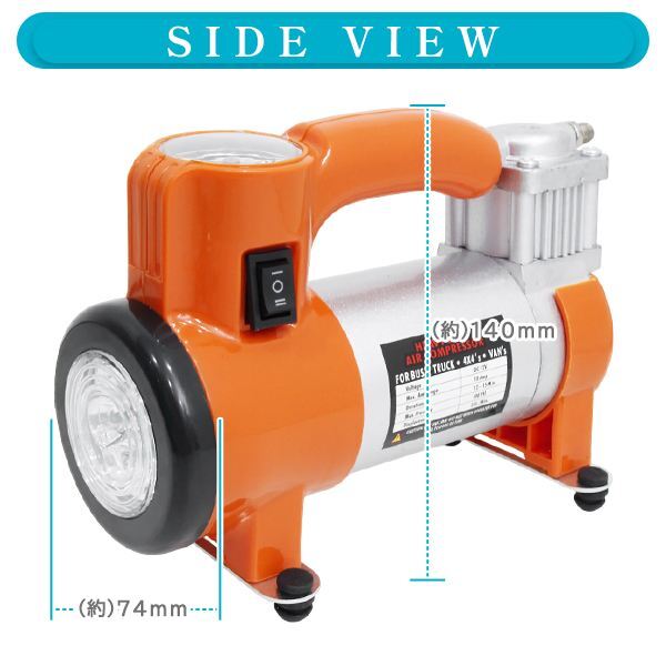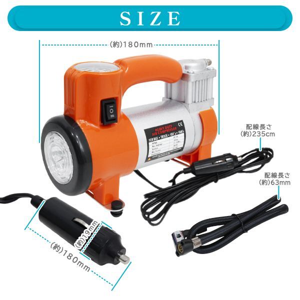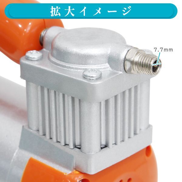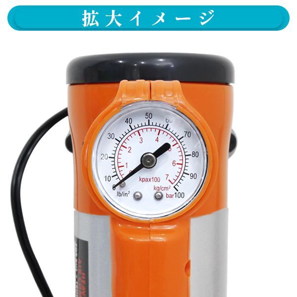 Б エアコンプレッサー 空気入れ 自動車用 DC12V シガーソケット 接続式 シガー 高輝度 LEDライト 付き 小型 ポータブル オレンジ