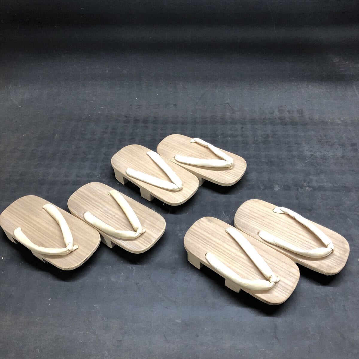 H3596 木製 下駄 和装小物 男物 男性用 白鼻緒 実寸約24㎝ 3点