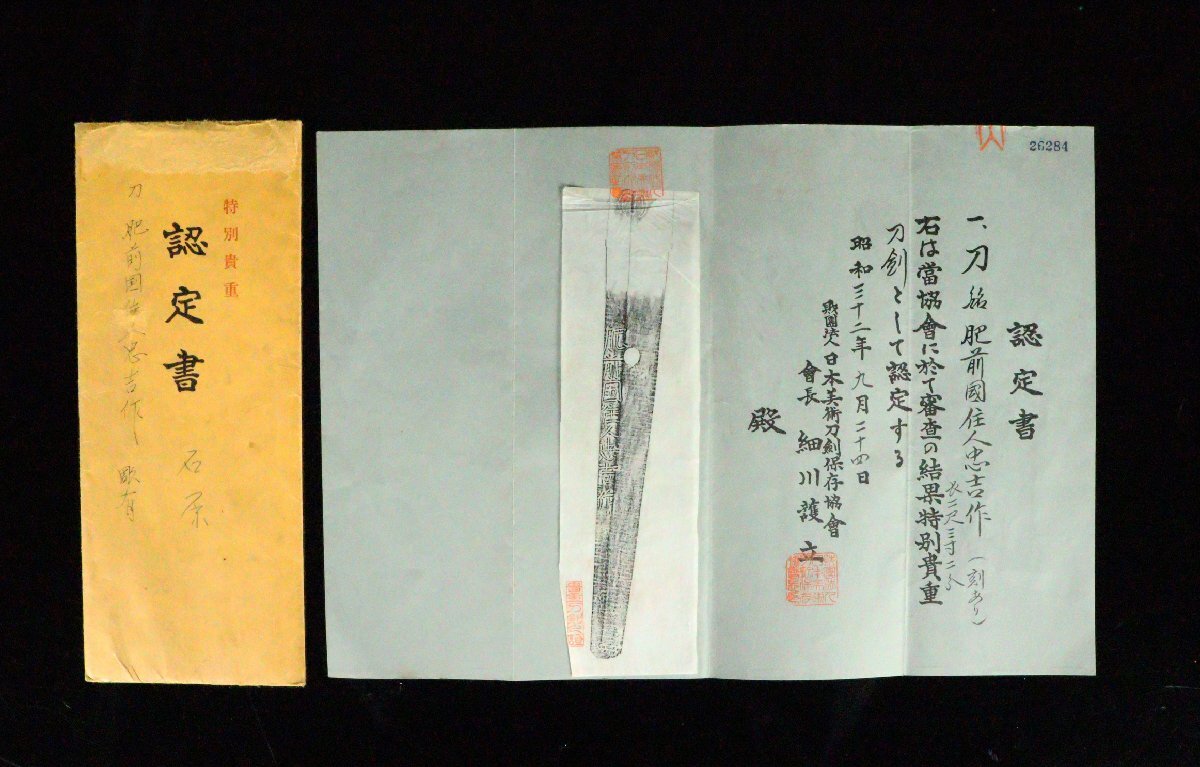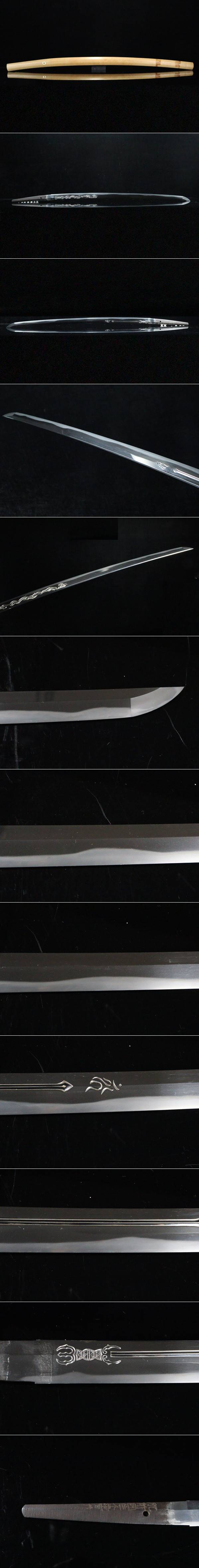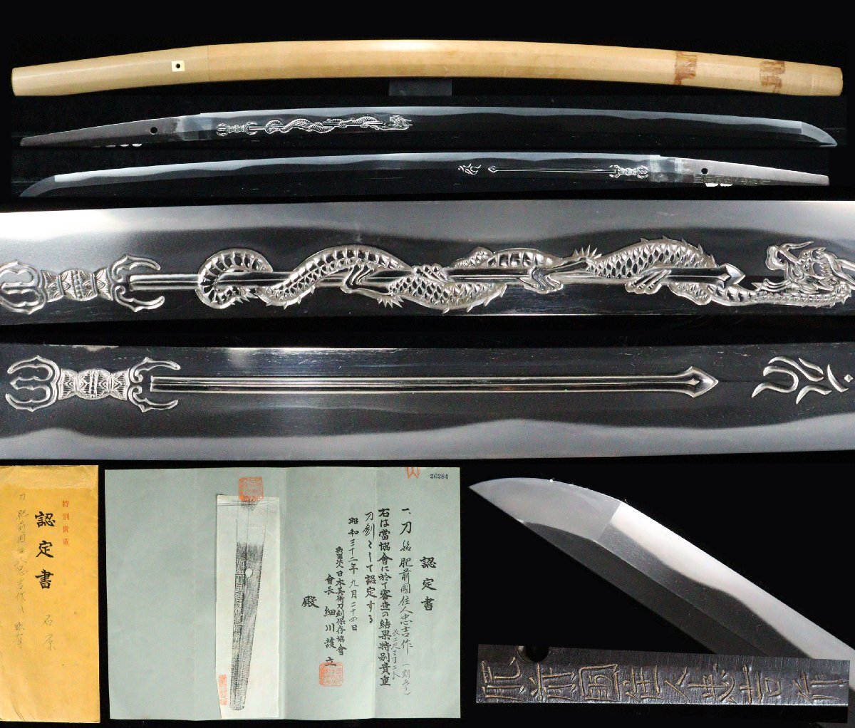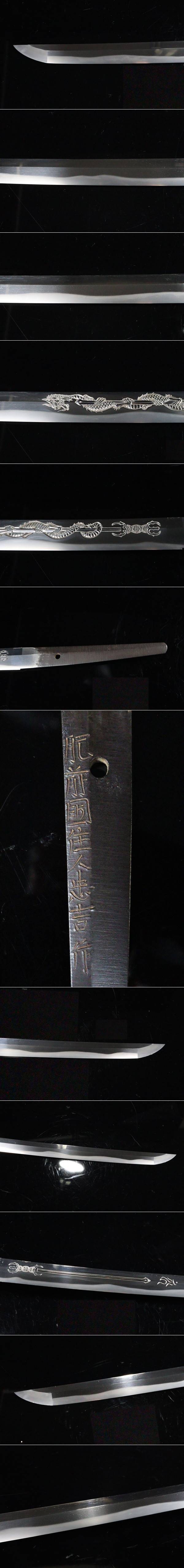 【ASAHI】最上作大業物希少な乱刃 在銘『肥前国住人忠吉作』特別貴重刀剣鑑定書 剣に龍図刀身彫 二尺三寸二分[7112etp]
