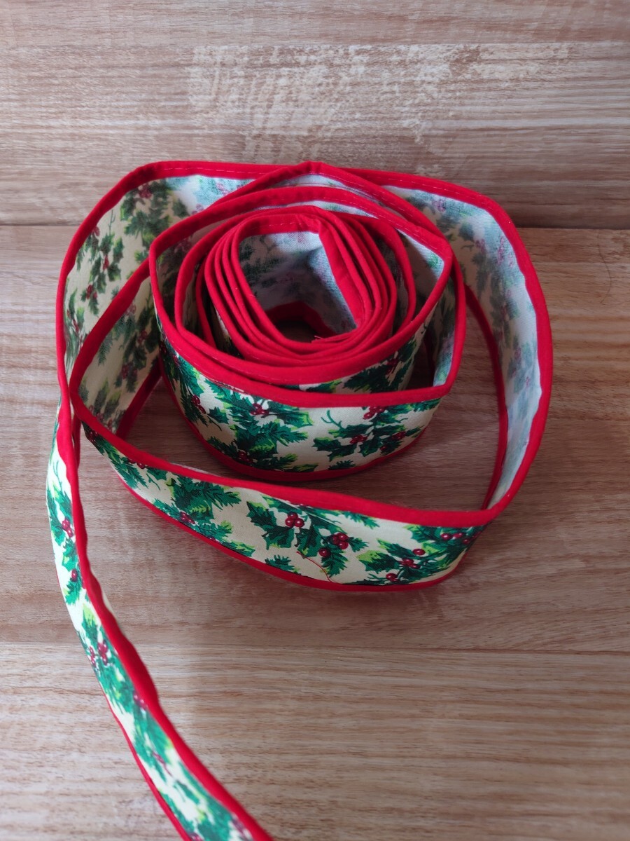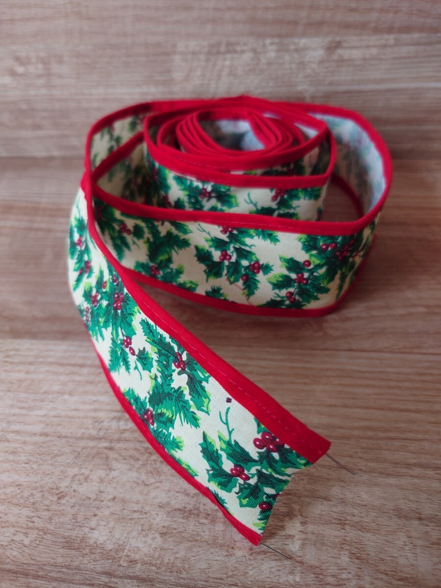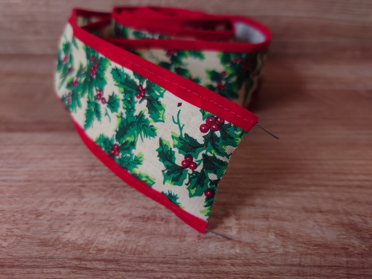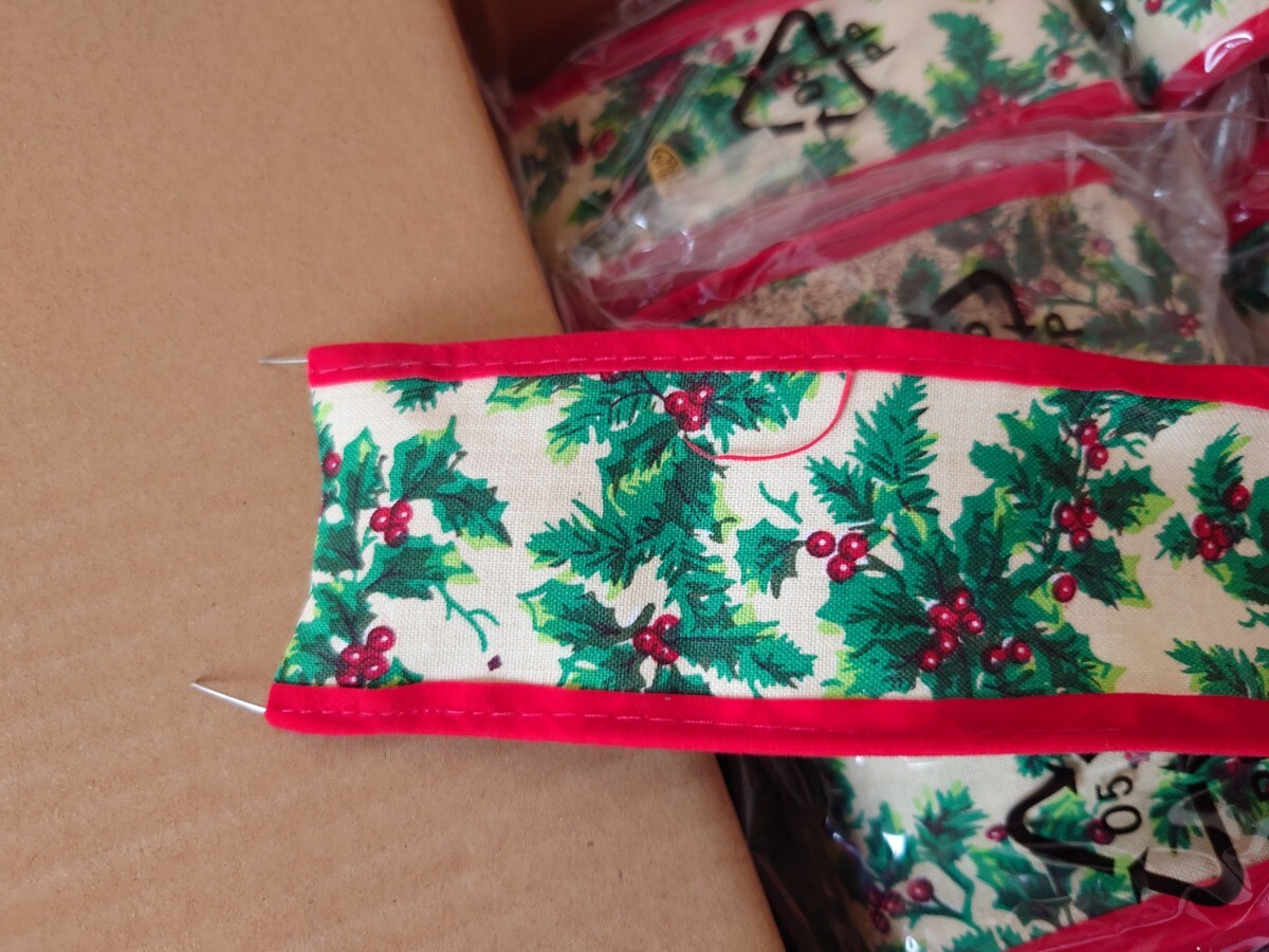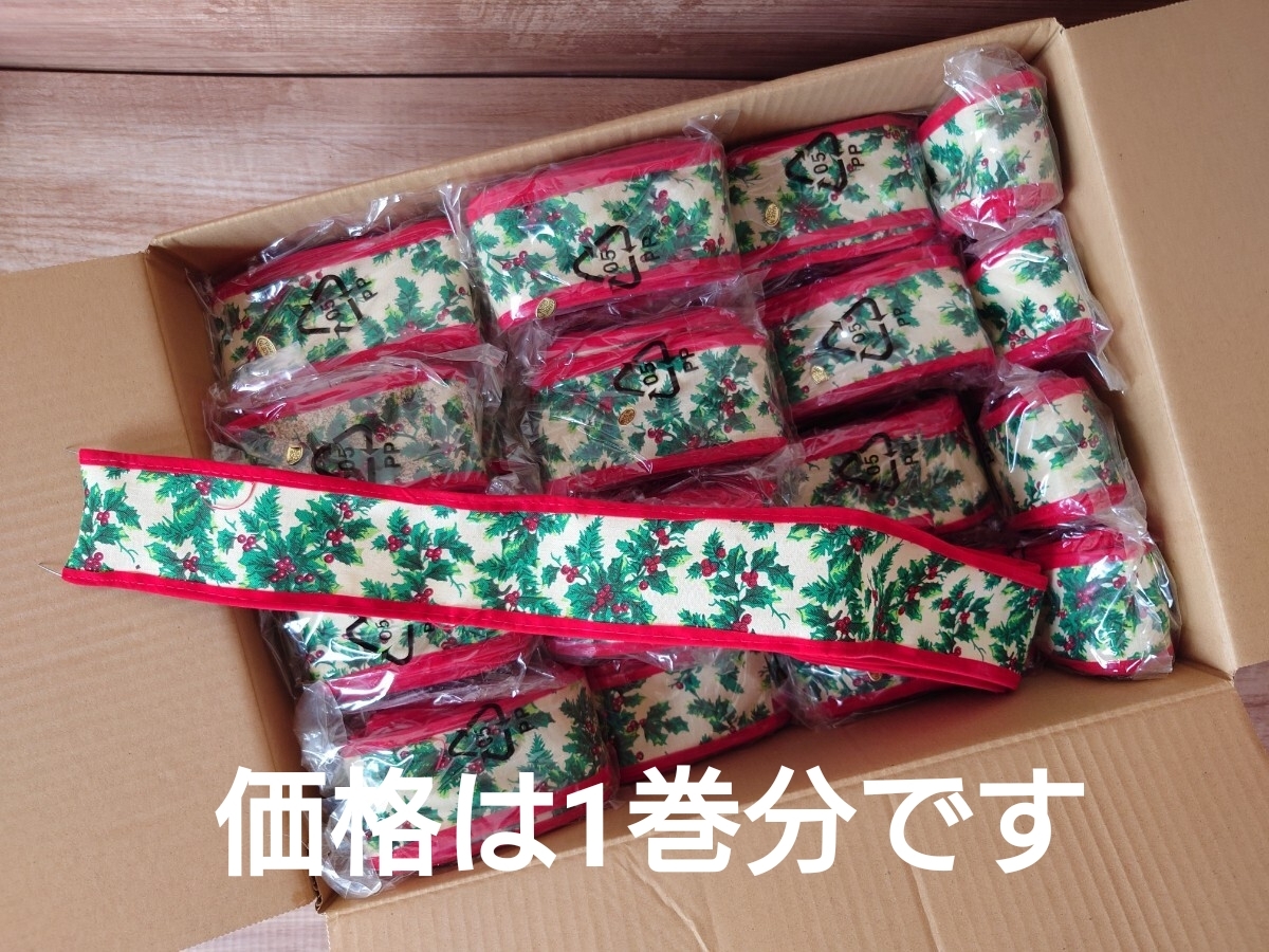 ②【Xmas ベリーとヒイラギ柄ワイヤーリボン】幅5.5cm×長さ2m75cm ガーランド/モール/ツリー/リース/イルミ/オーナメント/クリスマス