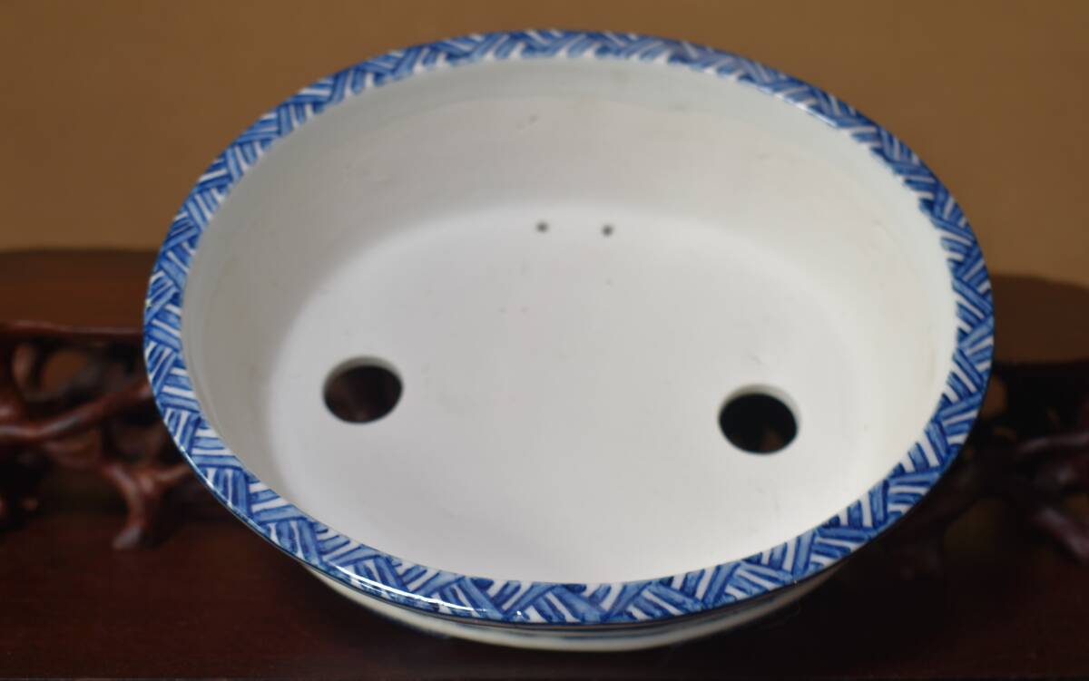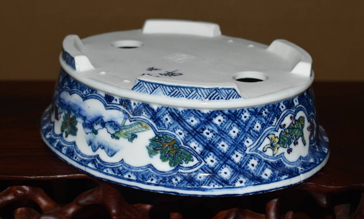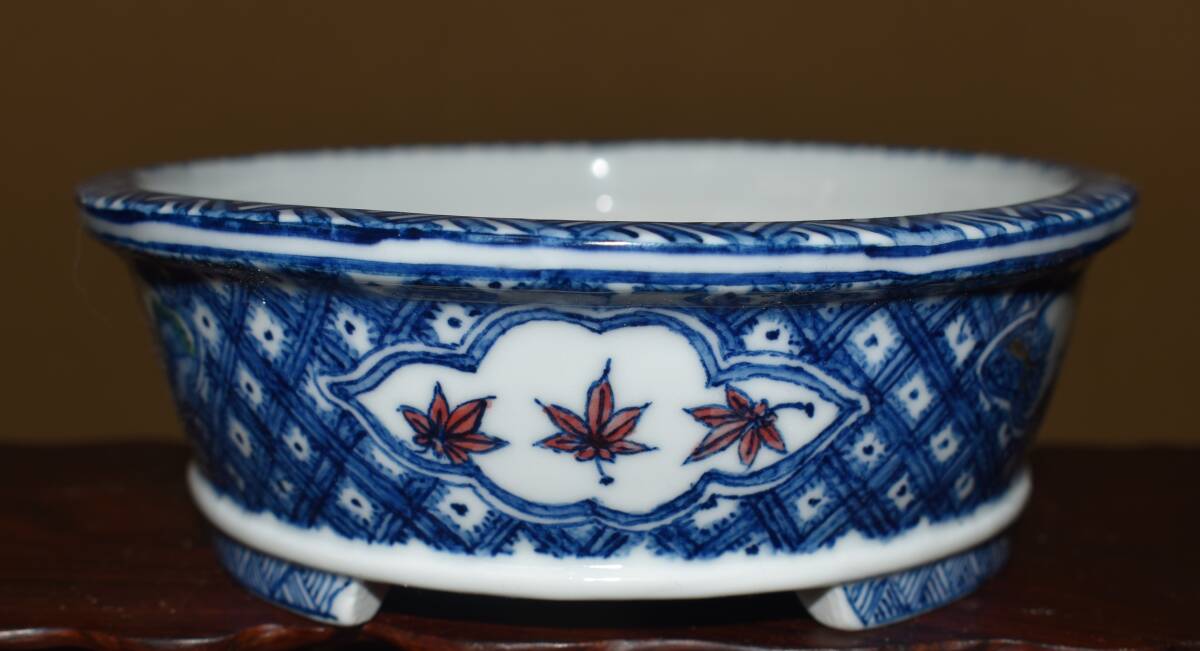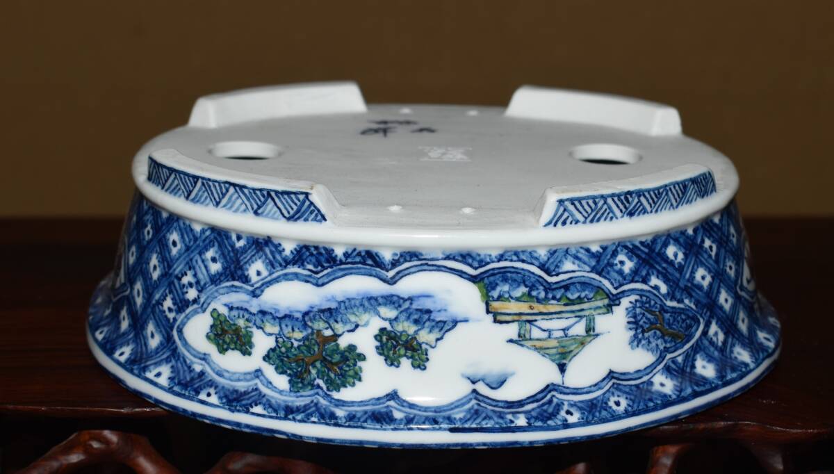 人気絵鉢作家<ゆうき祥石・色絵山水図・発色抜群・繊細画・実用性抜群・使い頃サイズ>外縁楕円鉢・間口18,3cm