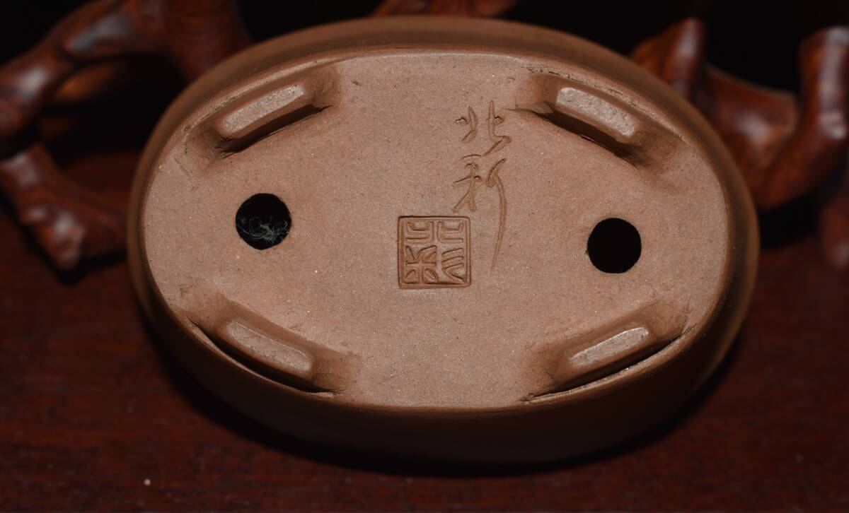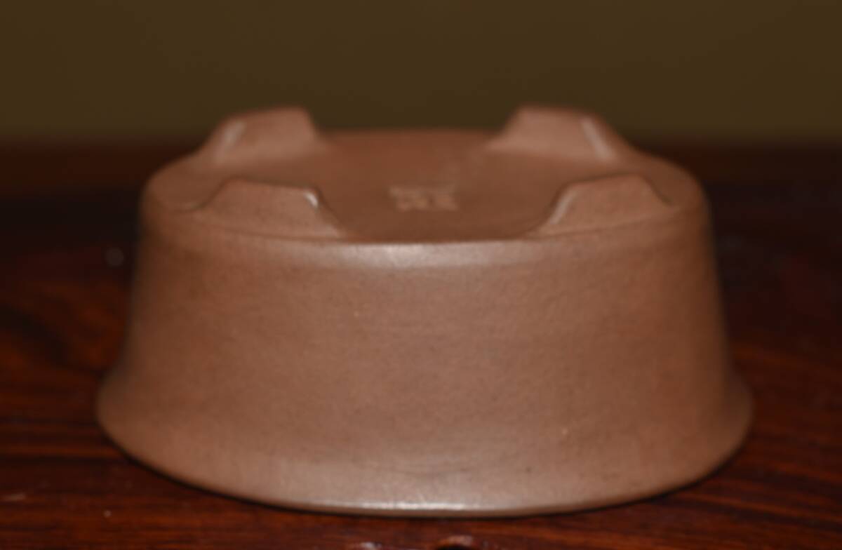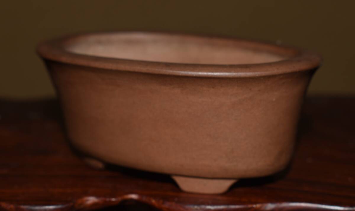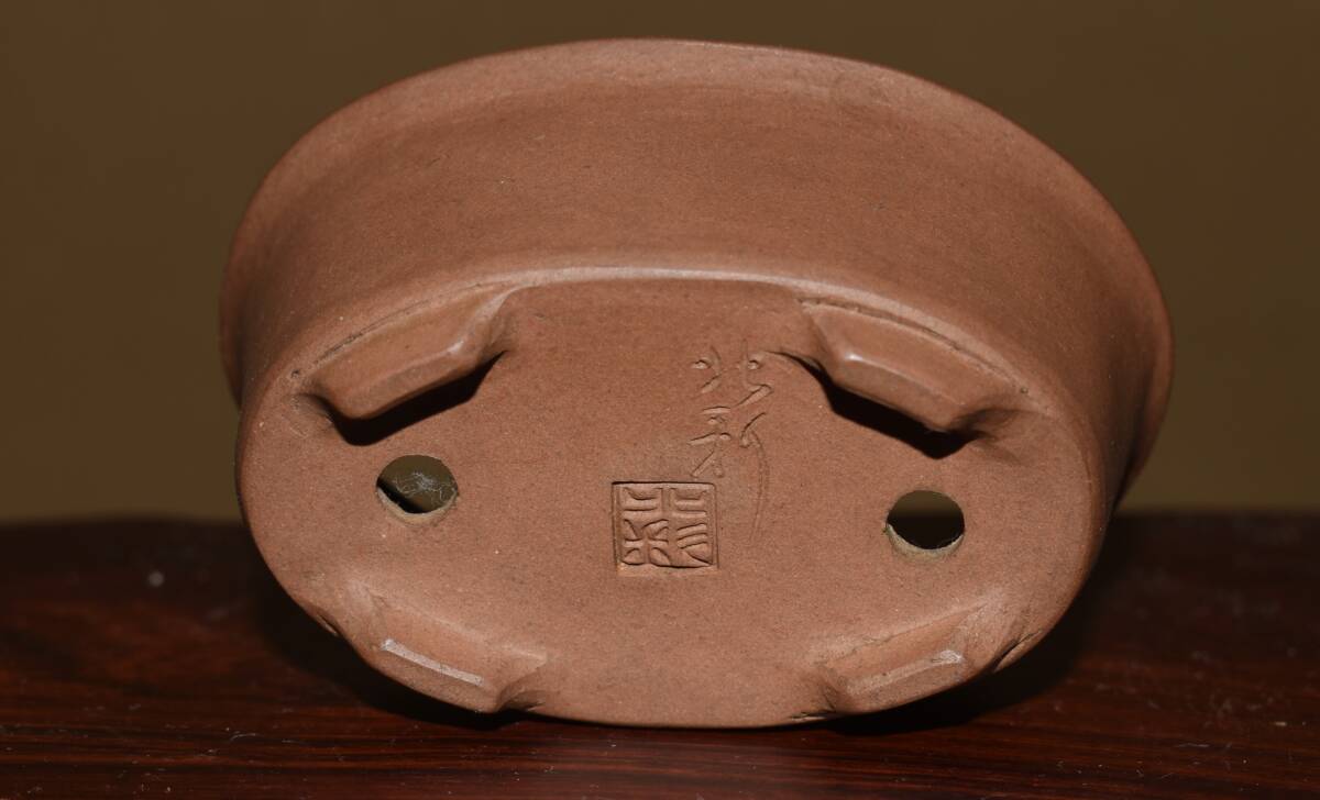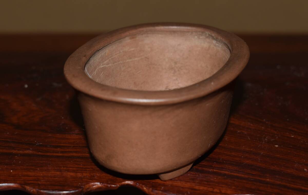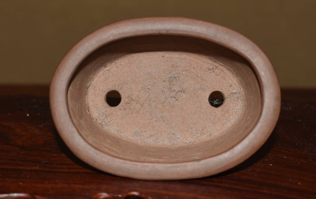 人気古窯作家<初期の山本北彩・土目最高・紫泥・時代乗り抜群・小鉢コレクターが30年使い込まれていた品>外縁楕円鉢・間口8cm