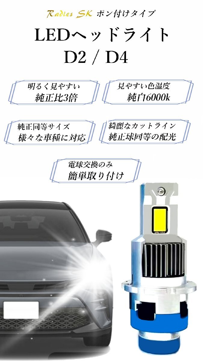 ポン付け D2 D4 D1 D2S D4S D2R D4R D2C D4C 12000lm 車検対応 1年保証 Radies SK Radies SK 刻印付き 正規品 純正HID車をLEDへ変更 左右合計爆光12000lm ドライバー内蔵で配線スッキリでポン付け可能 車検対応 カプラーONで簡単な取り付け 安心の1年間保証 ポン付け D2 D4 D1 D2S D4S D2R D4R D2C D4C 12000lm 車検対応 1年保証 Radies SKは、その驚異的な明るさ12000lmで夜のドライブを明るく照らします。Radies SKの刻印が施された正規品であり、信頼性と品質を保証します。このヘッドライトは、純正球と同じ発光点を持ち、純正球を基にしたデザインで、配光性能も純正品と遜色なく、純正比最大380%の明るさ向上が見込めます。 完全ポン付け仕様で、純正球と交換だけの簡単取り付け可能です。これにより、手間と時間を省きつつ、車のカスタマイズが楽しめます。また、車検対応設計であるため、安心して使用することができます。 明るさを大幅に向上させることで、夜間の視認性が高まり、運転の安全性を向上させることが期待できます。1年保証も付いており、万が一の際にも安心です。このヘッドライトで、夜のドライブをより安全で快適なものにしましょう。 |