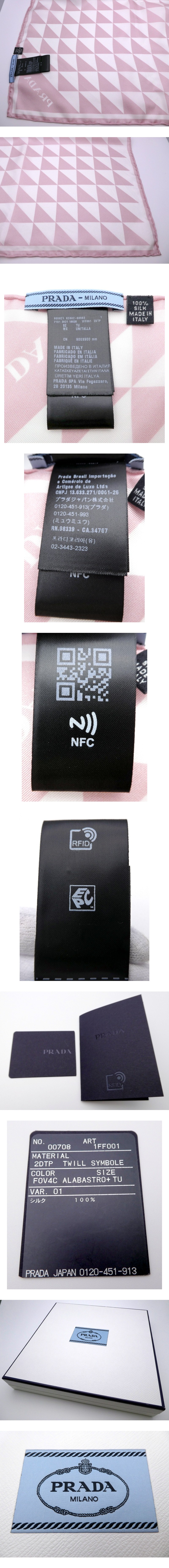 PRADA 1FF001 プリントシルクツイル ピンクxホワイト トライアングル柄 総柄 シルク100% 箱付 スカーフ 服飾小物 プラダ 1円~ K0628