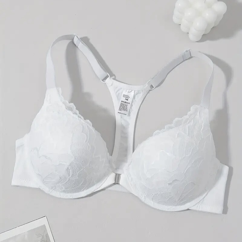 【新品】B80 フロントホック ワイヤー入りシームレスブラ★220f.ホワイト白★Yバック レース モールドカップブラジャー