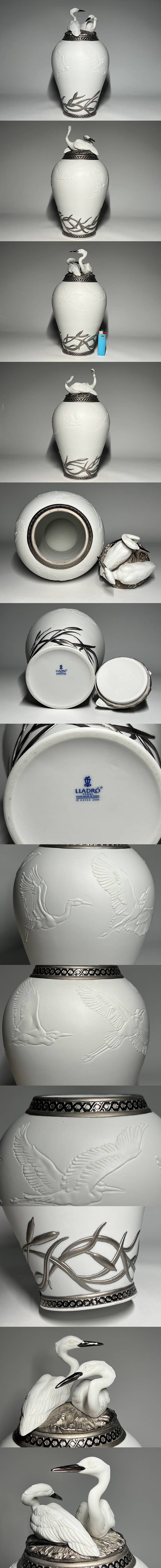 【瑞】リヤドロ LLADRO 白鷺 白サギ 蓋付き壺 飾り壺 高さ:30cm