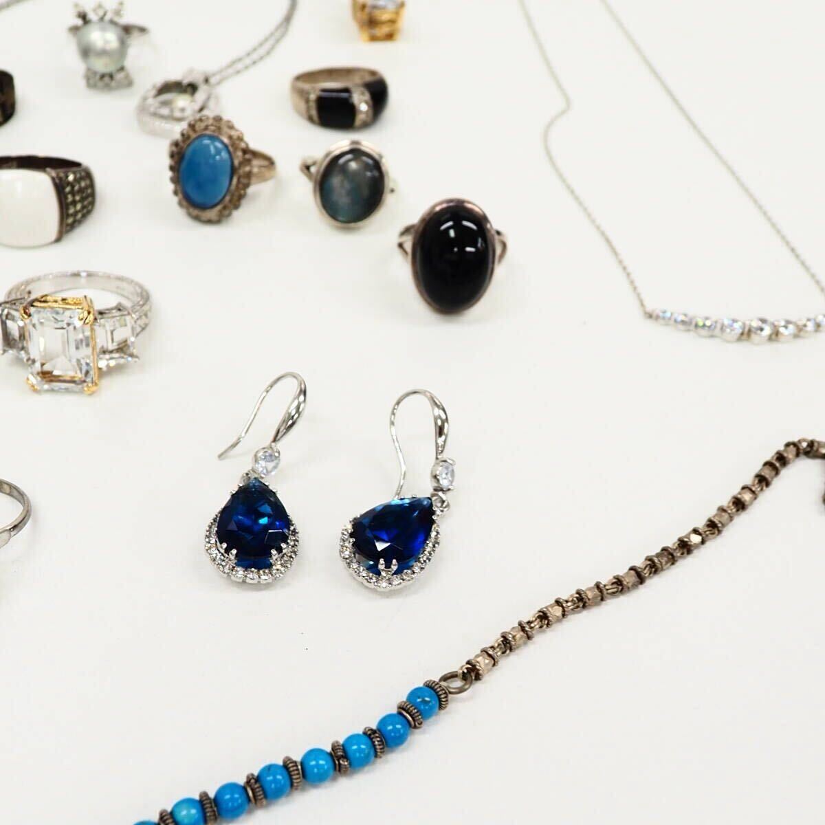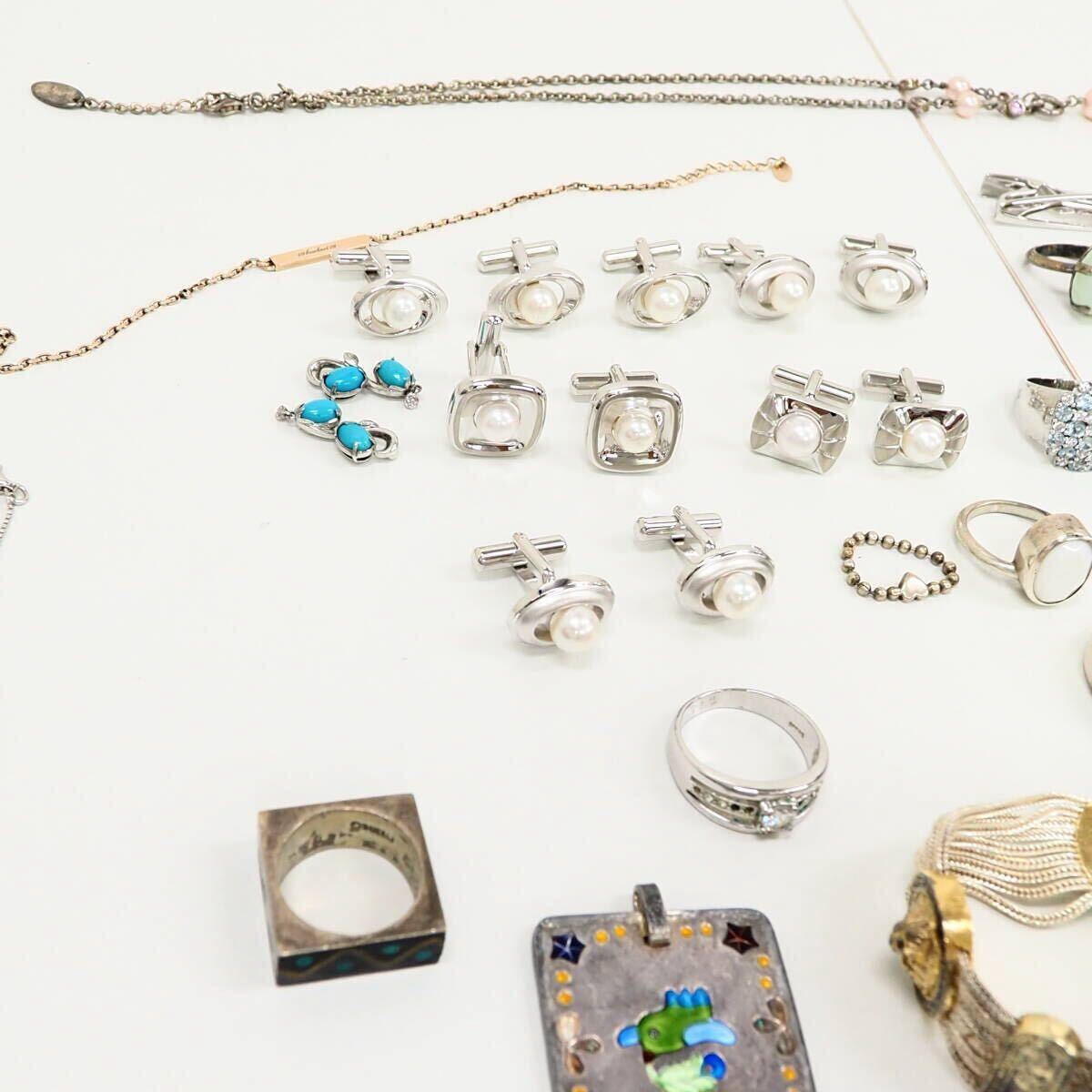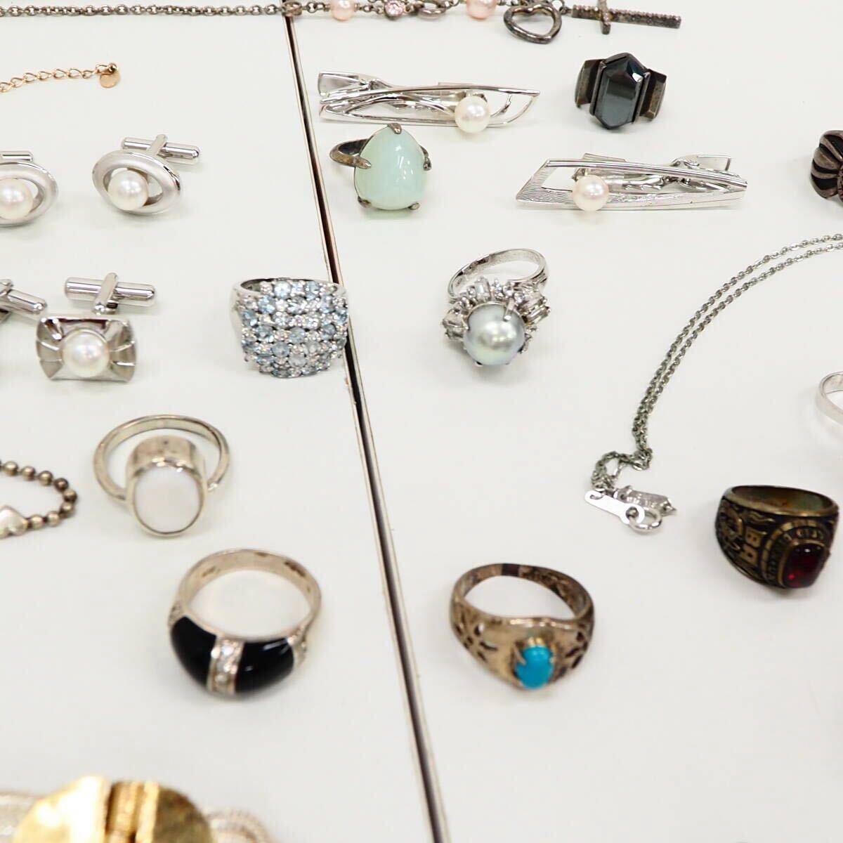 51749他-600 silver リング 大量 まとめ 約440g◆天然石/SV/ほぼ925と純銀/◆シルバー パール色石まとめ 送料600円~