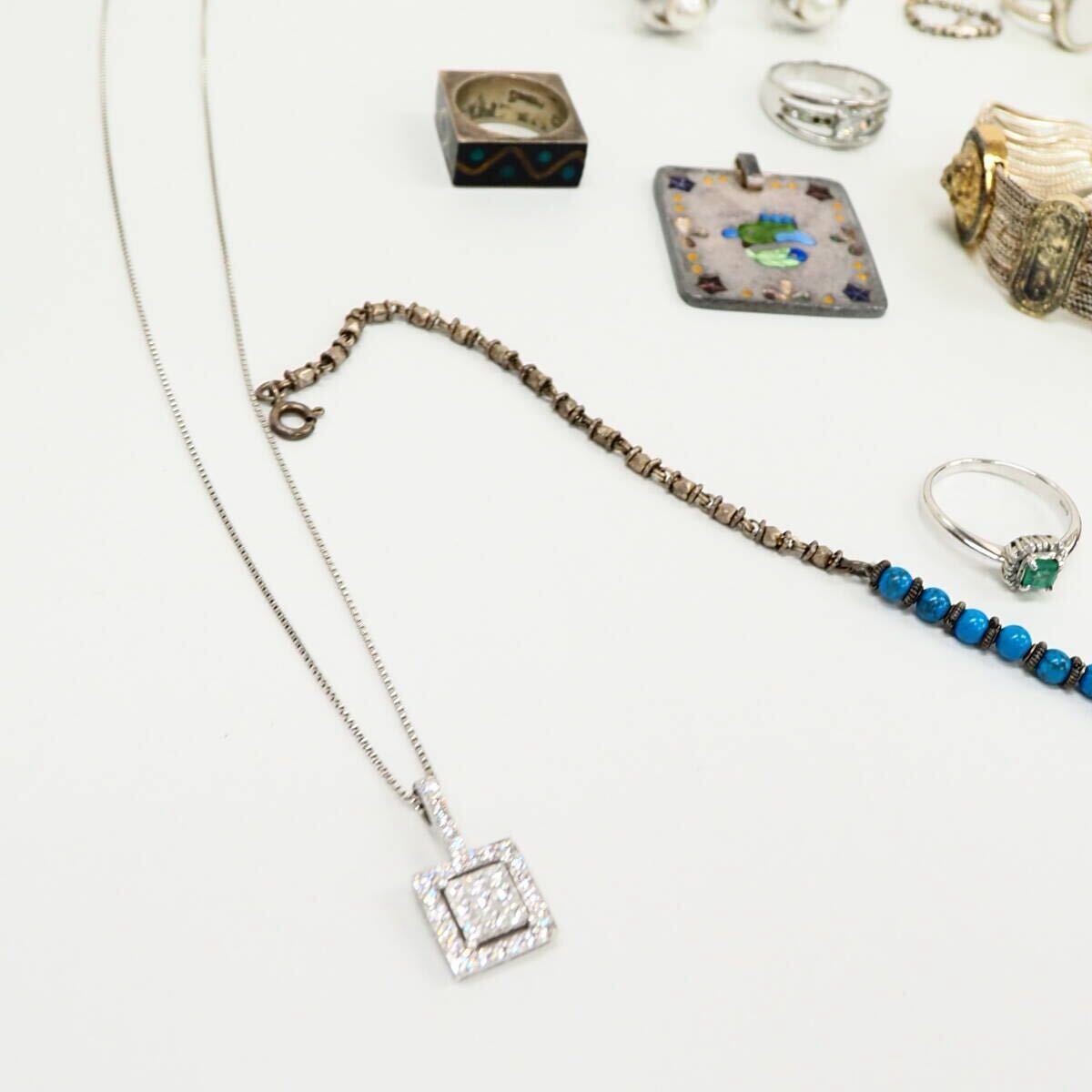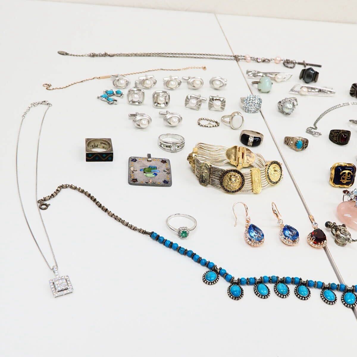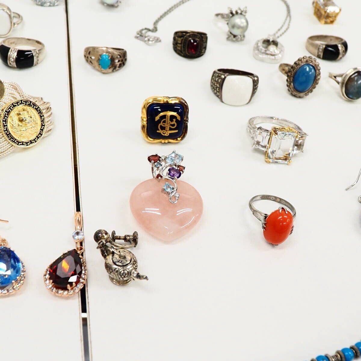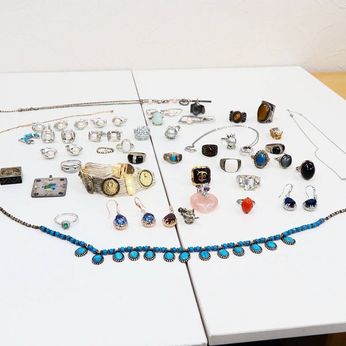 51749他-600 silver リング 大量 まとめ 約440g◆天然石/SV/ほぼ925と純銀/◆シルバー パール色石まとめ 送料600円~