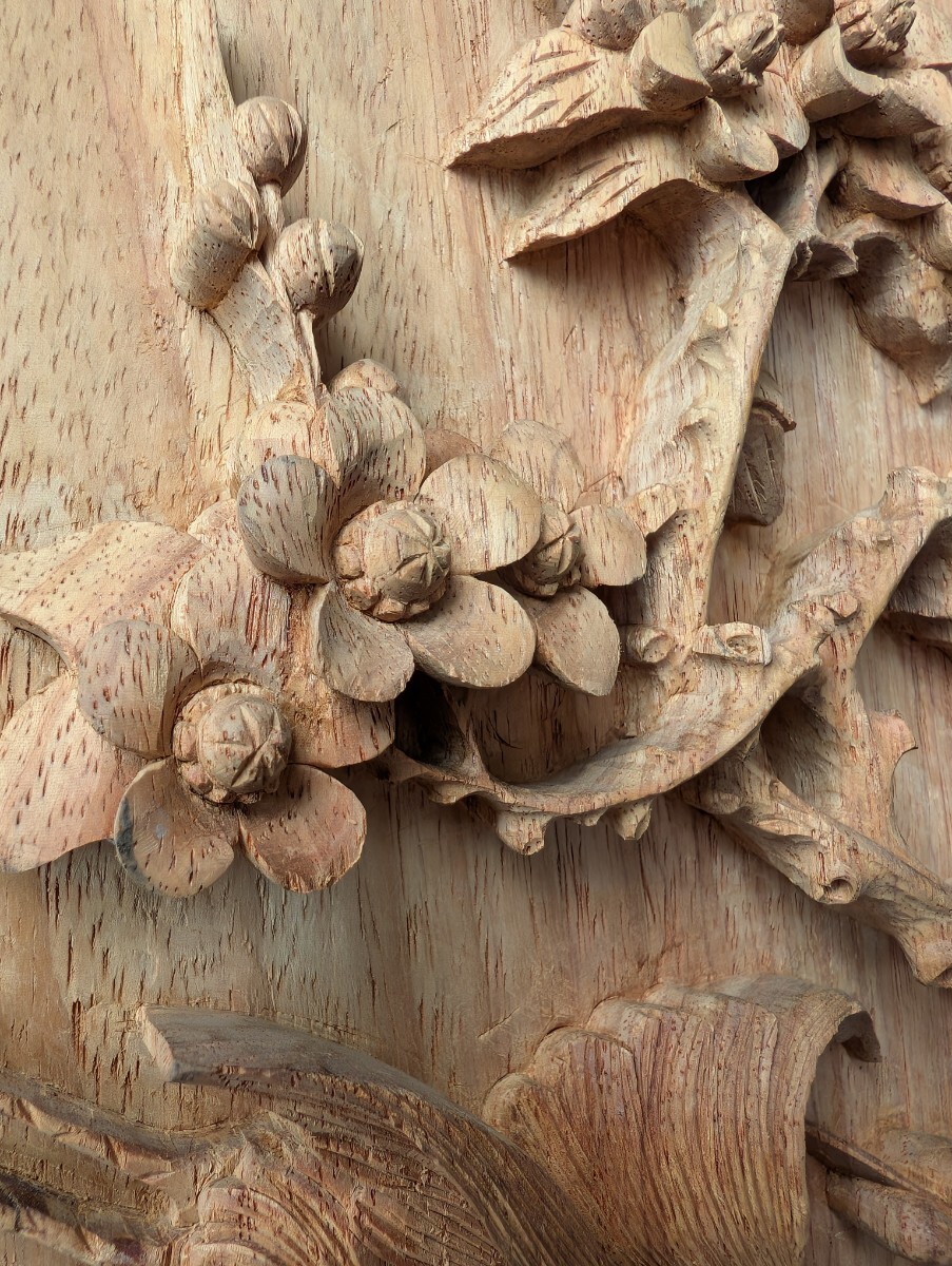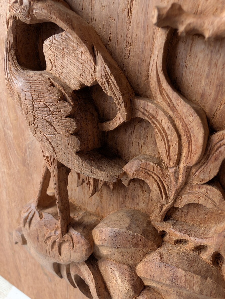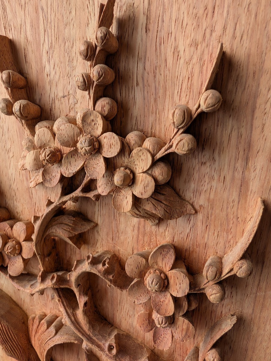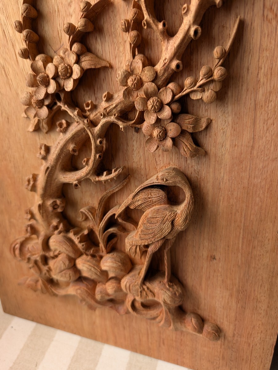 【送料込み】花梨 1枚板から彫り出した花鳥飾り板2枚セット 管理番号(1853)デッドストック 木製彫刻 生地仕上