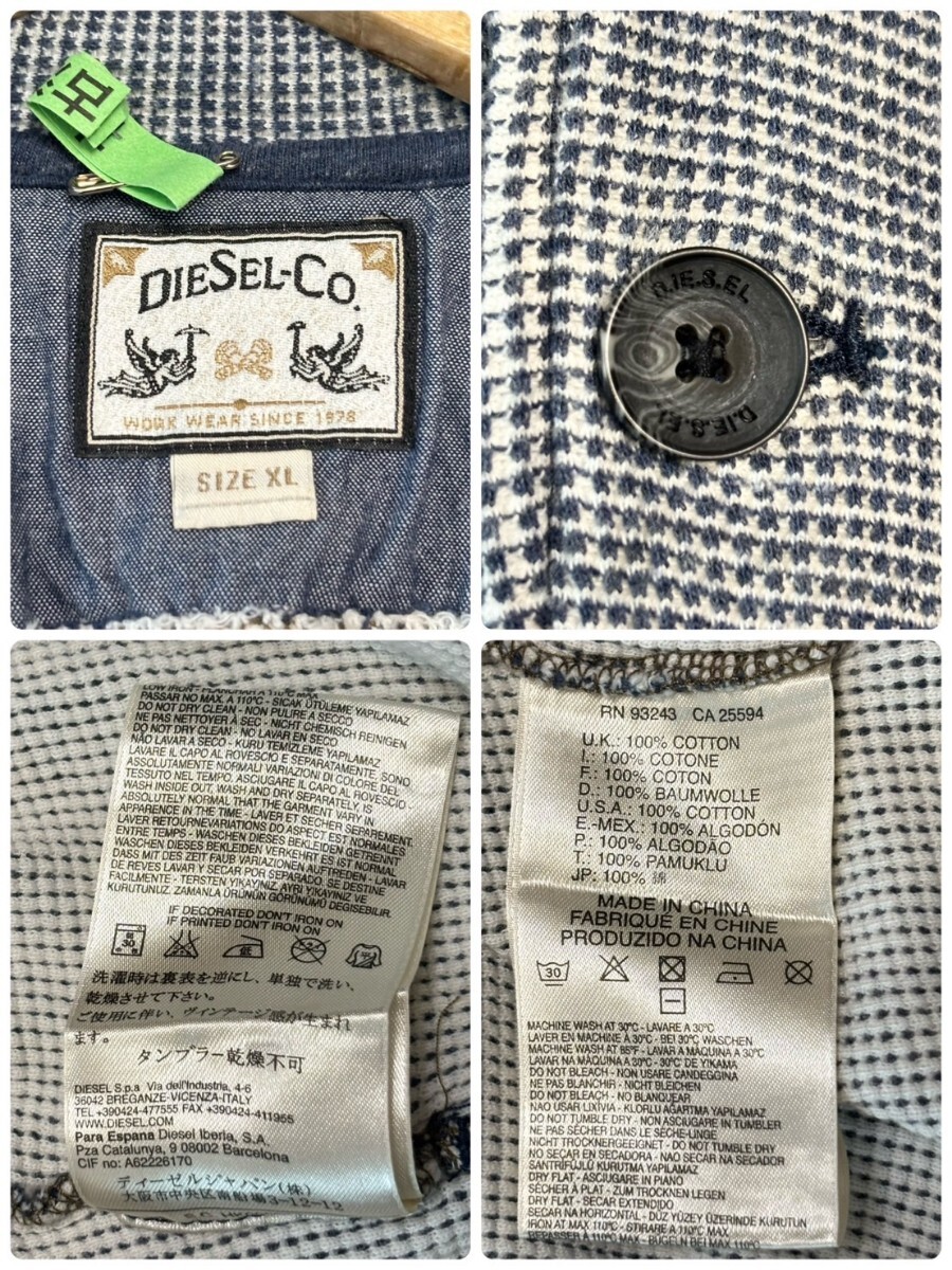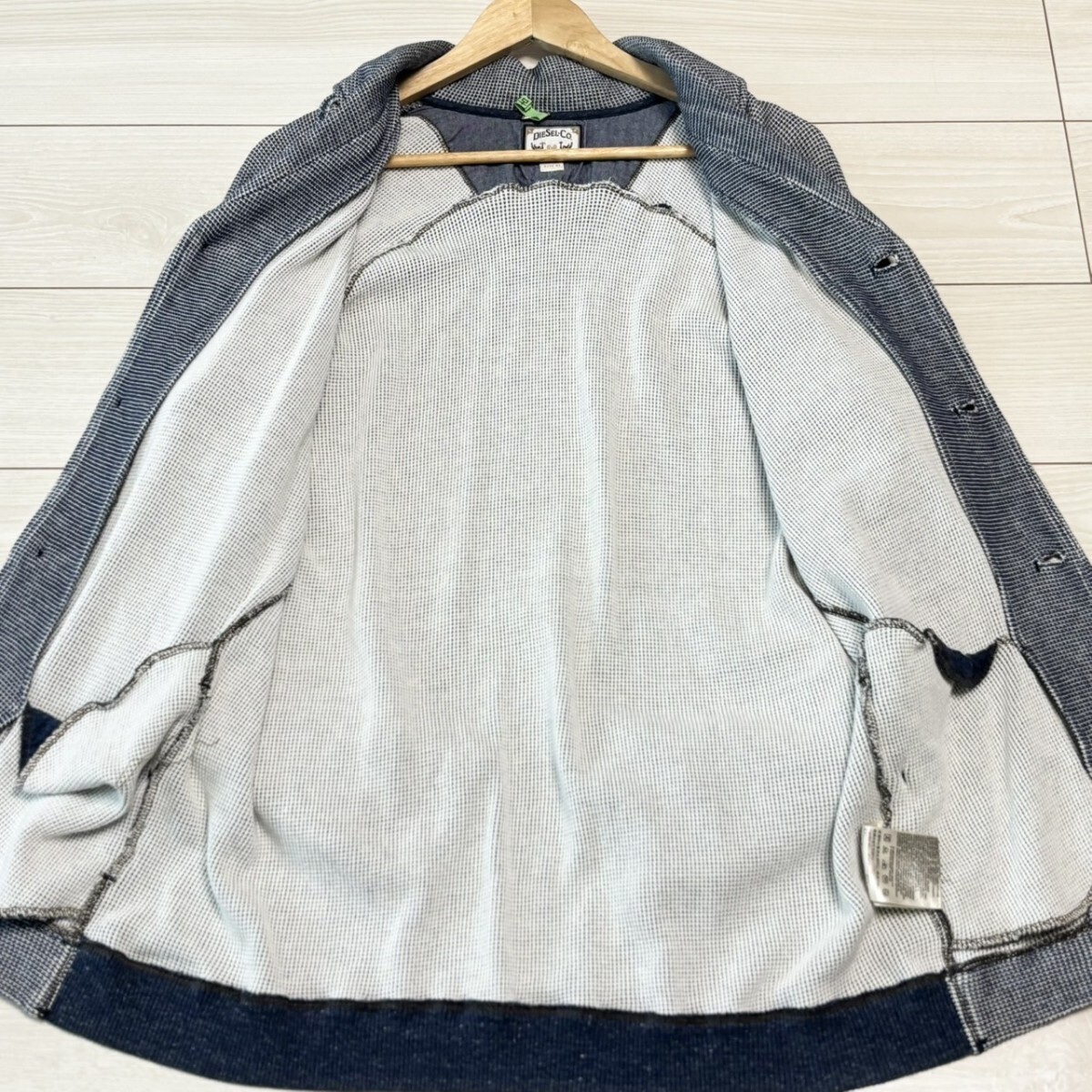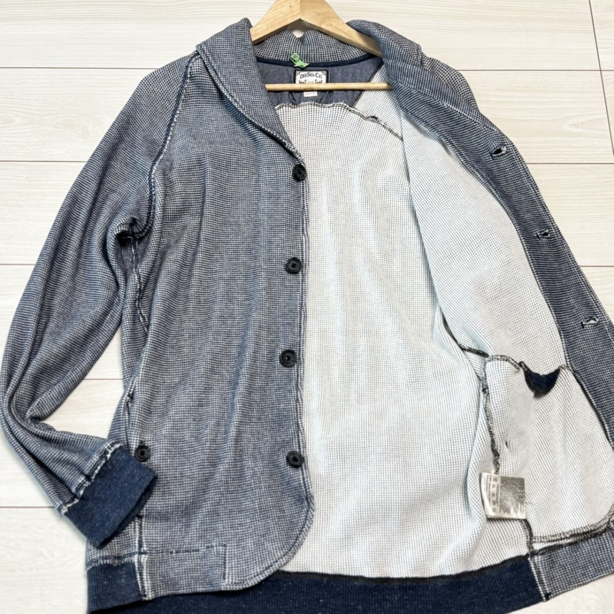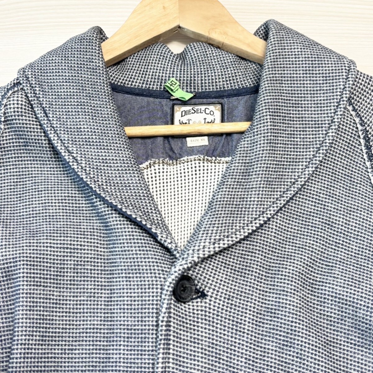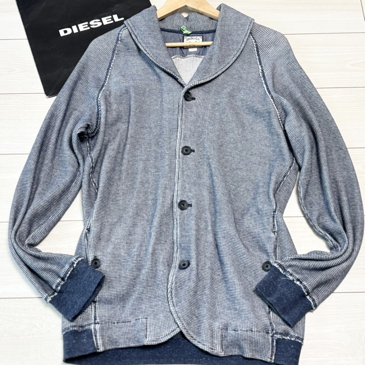 極美品/XLサイズ●DIESEL ディーゼル ワッフル サーマル カーディガン 長袖 デニム調 切替デザイン 背面文字刺繍