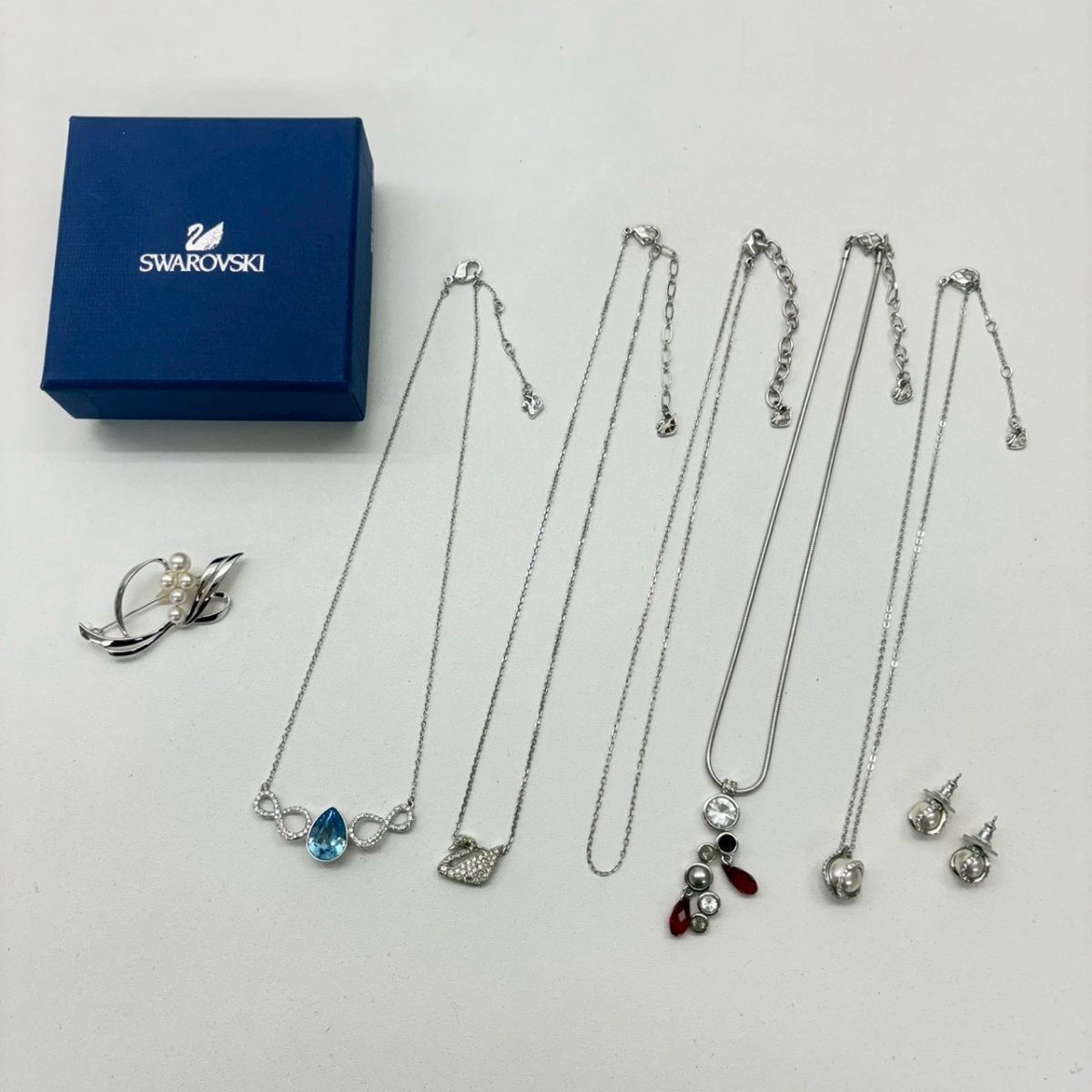 Y209-■【まとめ売り】◎ SWAROVSKI スワロフスキー アクセサリー 7点セット ネックレス ピアス ブローチ スワン カラーストーン 他 KA