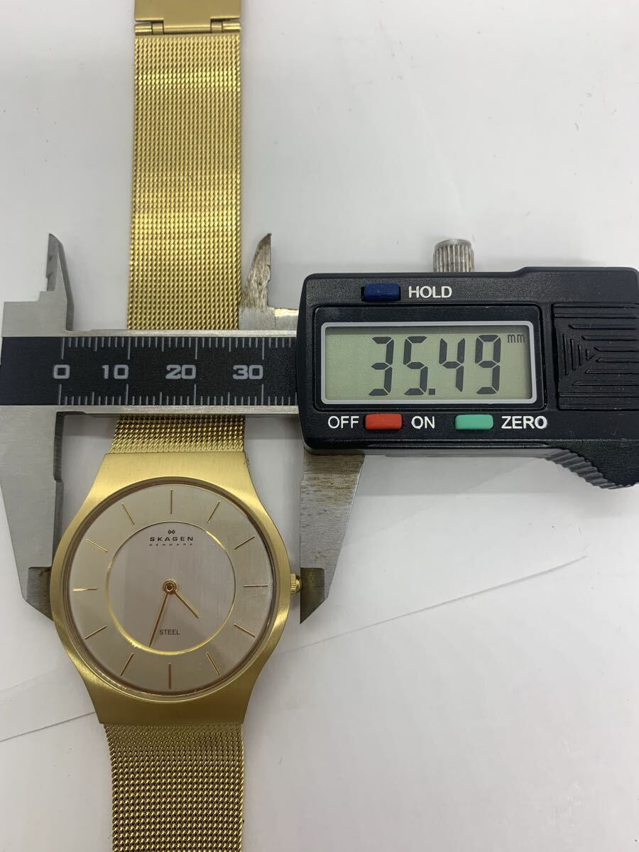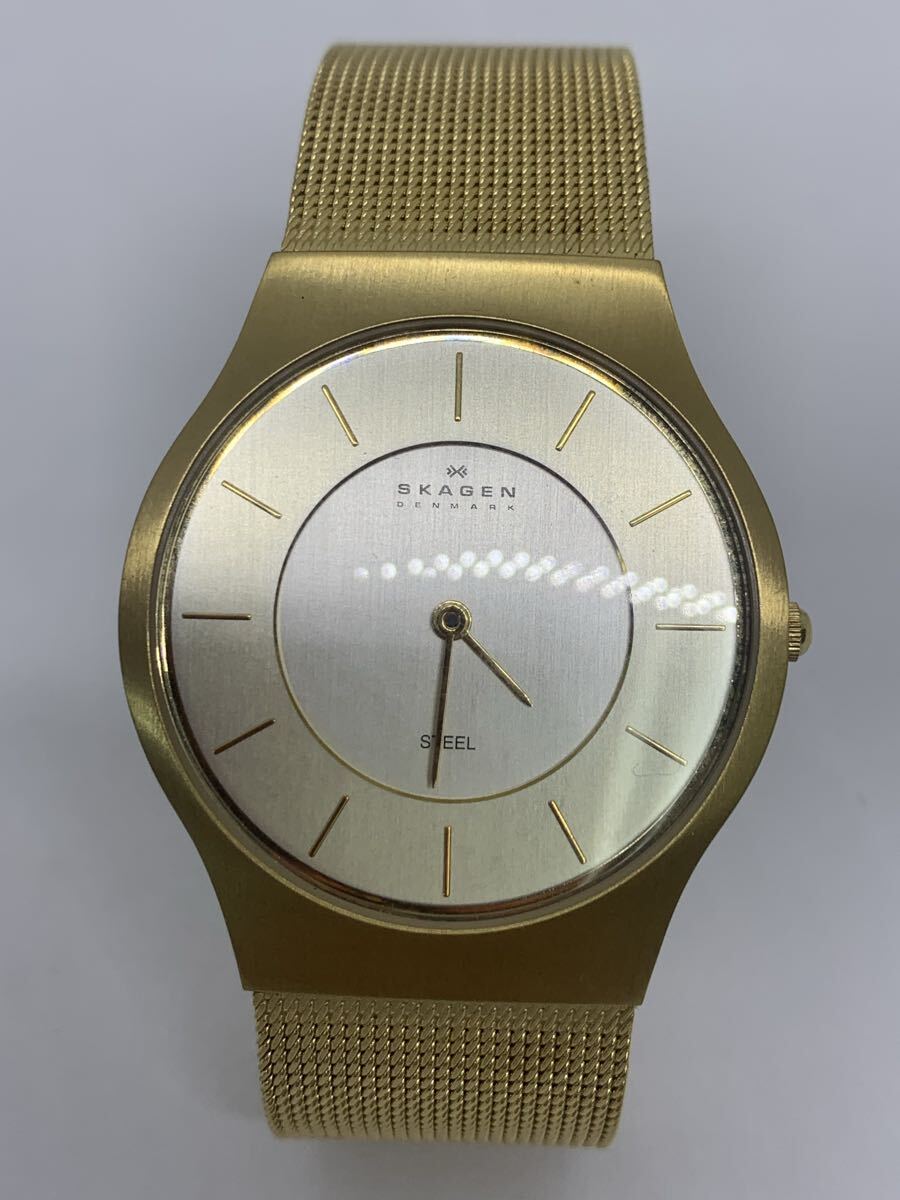 【E/F5304】SKAGEN DENMARK スカーゲン デンマーク 233LGG 腕時計 可動品 稼働品 クォーツ ゴールド文字盤