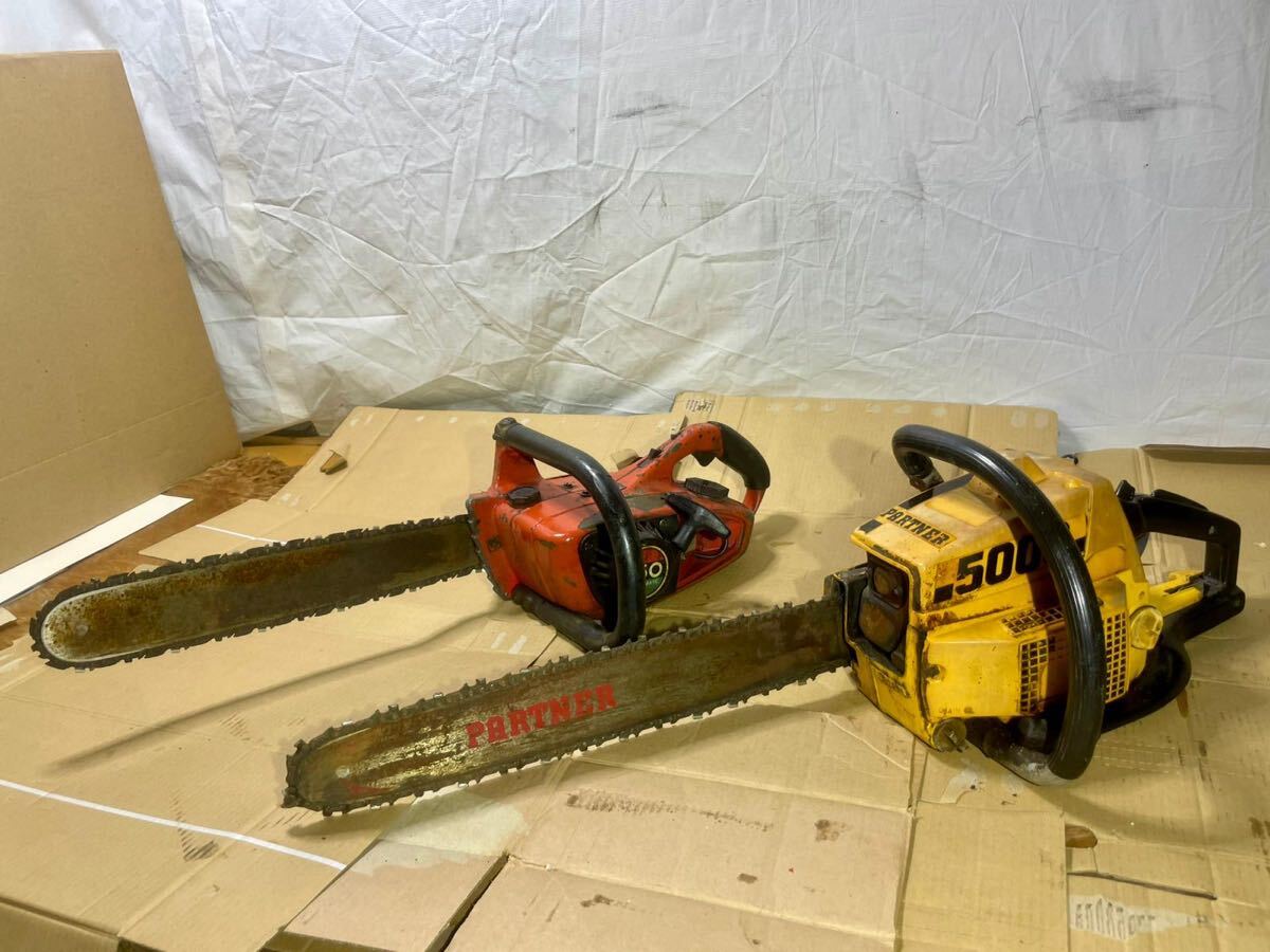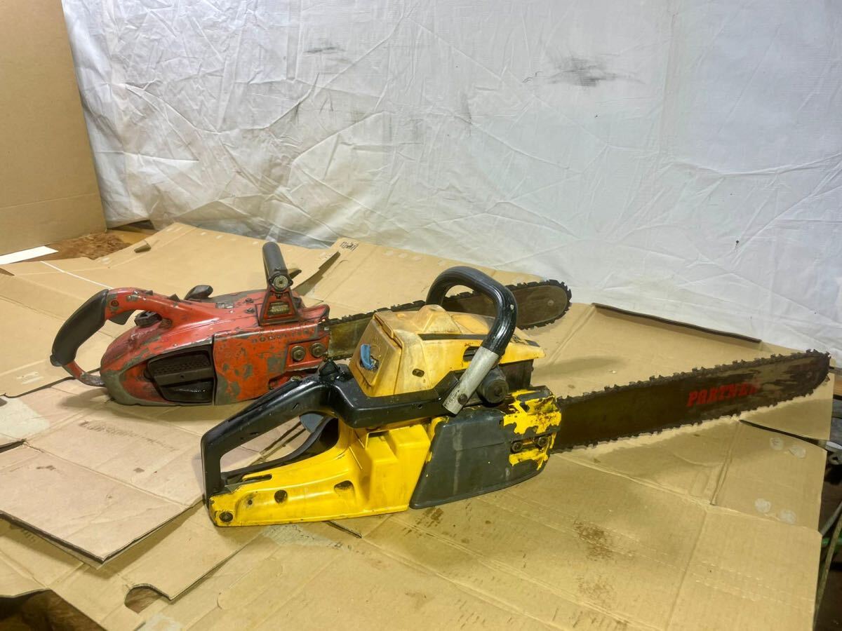 PARTNER(パートナー)5000 と HOMELITE(ホムライト)150E AUTO のチェーンソー2台セットです。