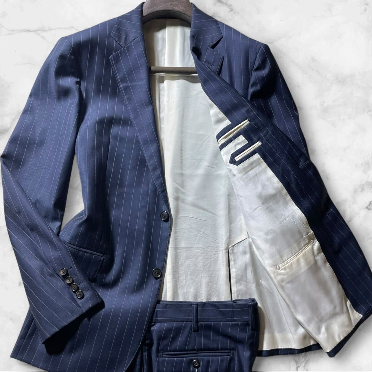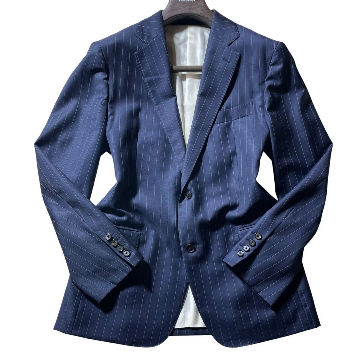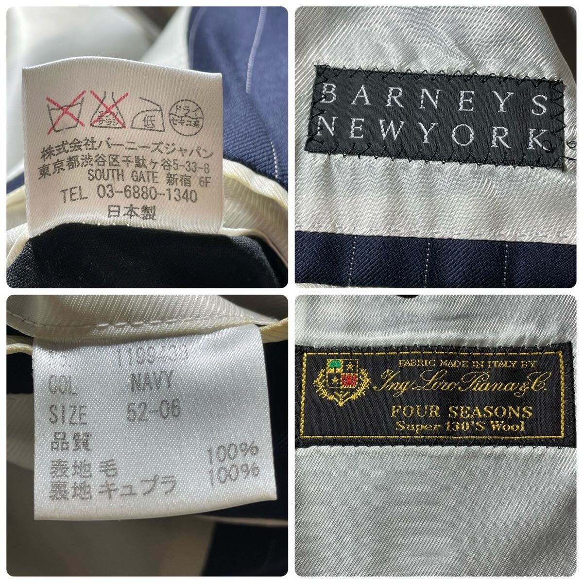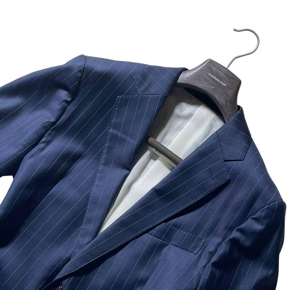 最高級生地/XL相当■ バーニーズニューヨーク ロロピアーナ セットアップ スーツ ネイビーブルー ストライプ ジャケット Super130's メンズ