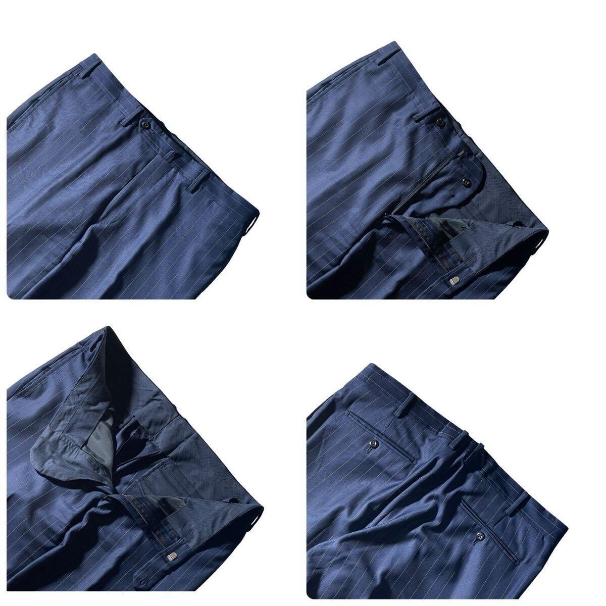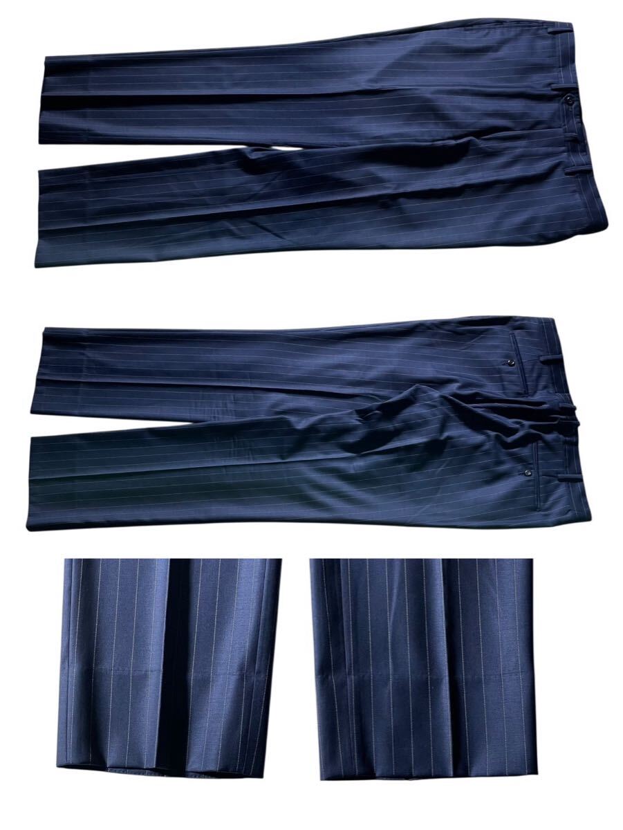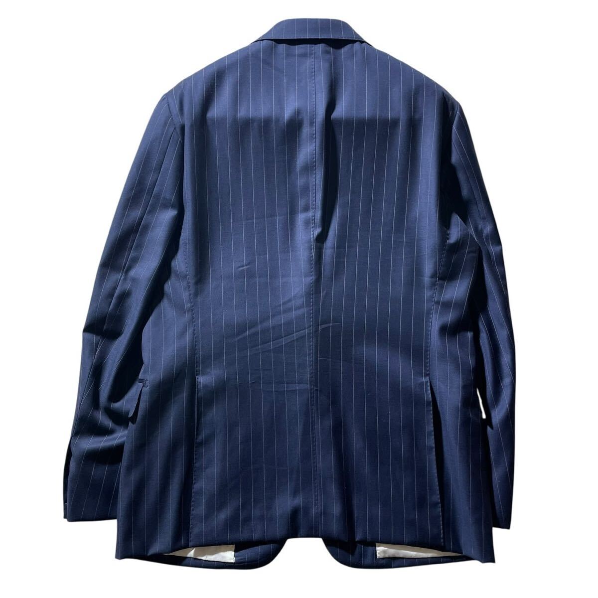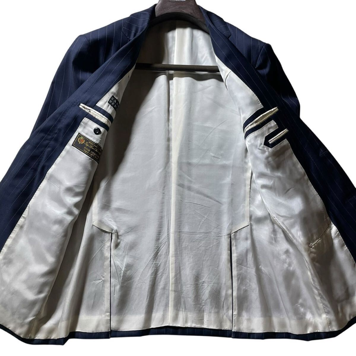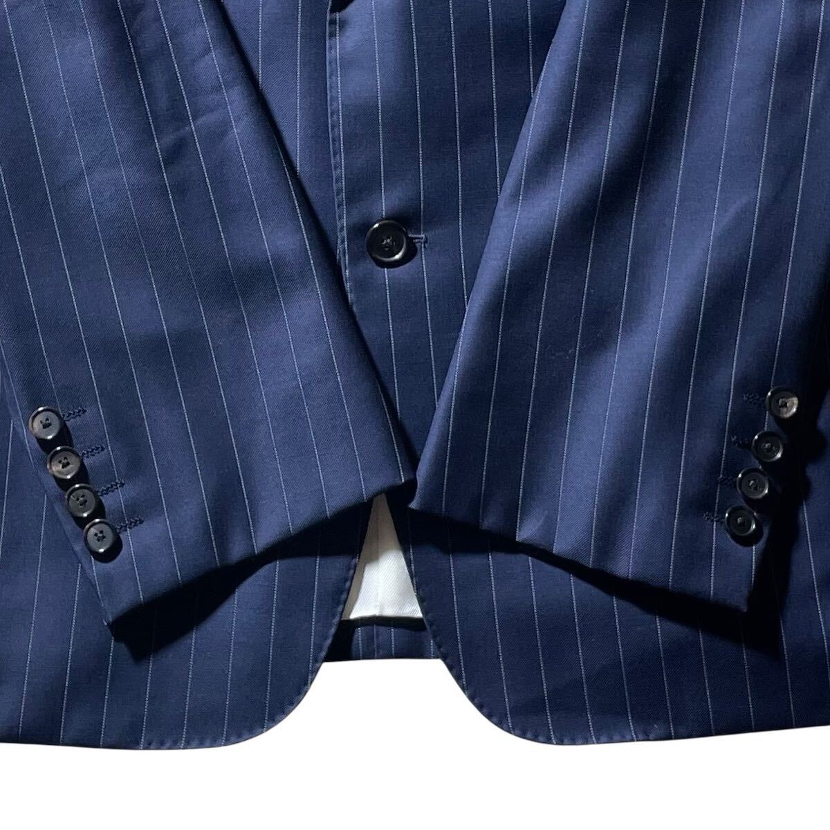 最高級生地/XL相当■ バーニーズニューヨーク ロロピアーナ セットアップ スーツ ネイビーブルー ストライプ ジャケット Super130's メンズ