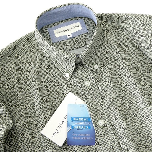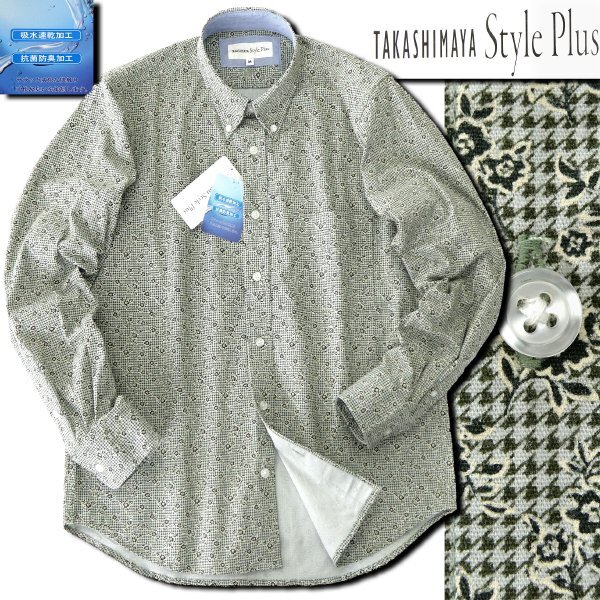 新品 高島屋 タカシマヤ フラワープリント BD オックス シャツ L 緑 【I58315】 TAKASHIMAYA Style Plus メンズ 長袖 吸水速乾 抗菌防臭