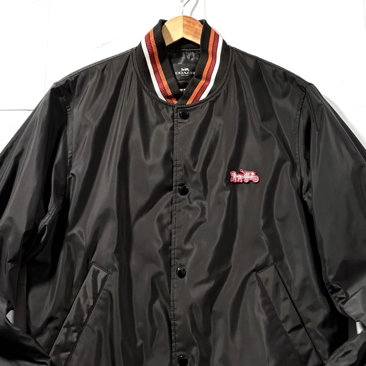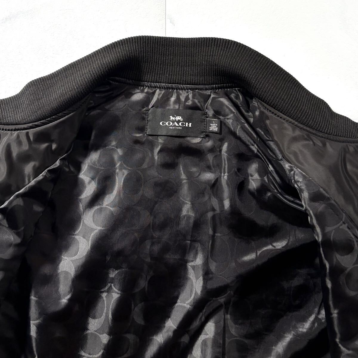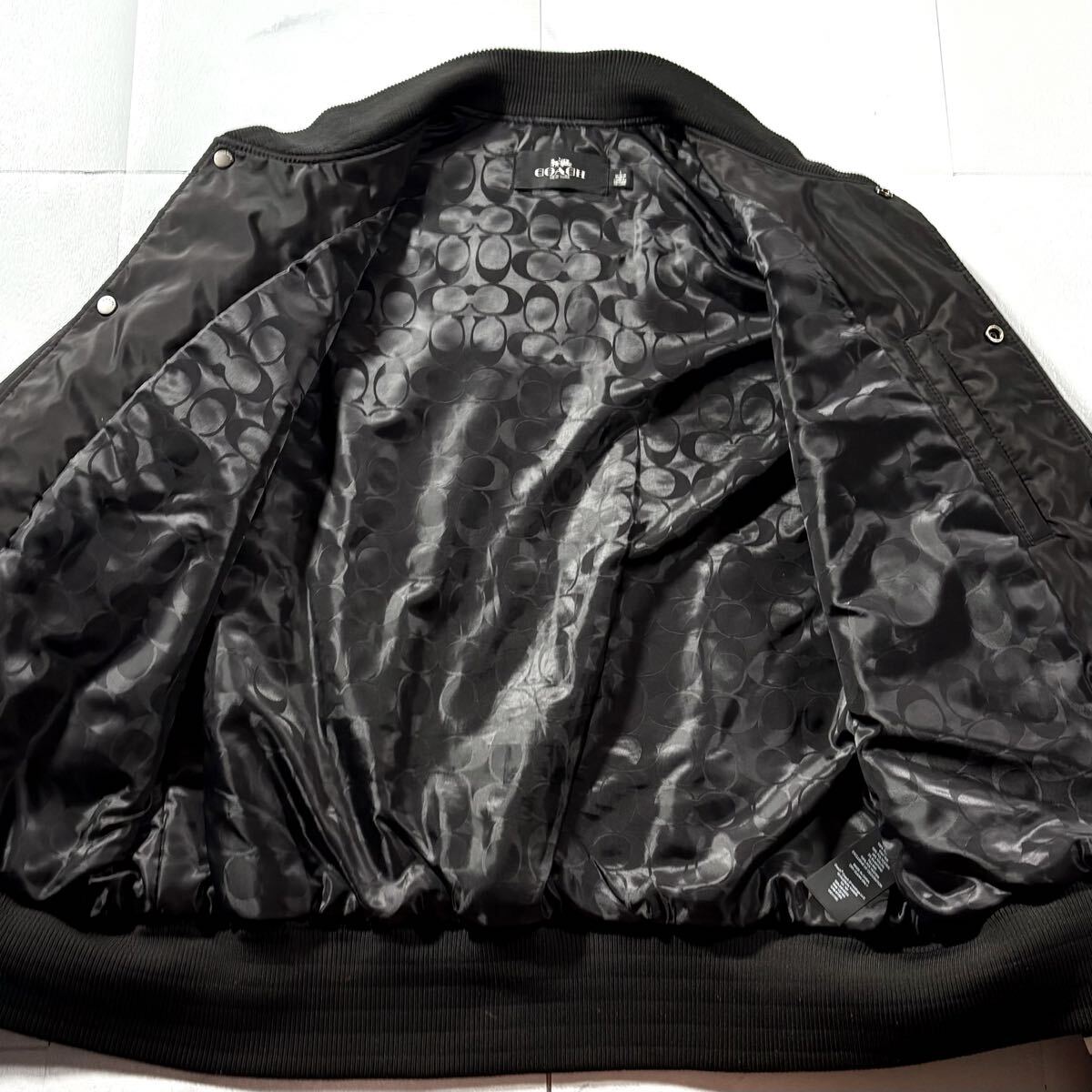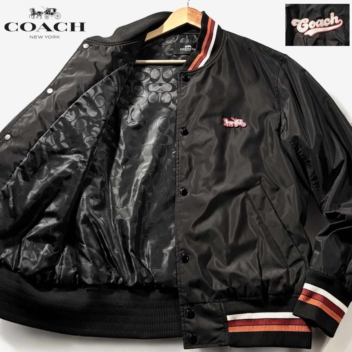 極美品/XLサイズ相当●近年モデル COACH コーチ スタジャン 中綿 ナイロン ジャケット アウター 裏地シグネチャー CC柄 総柄 背面ロゴ 黒