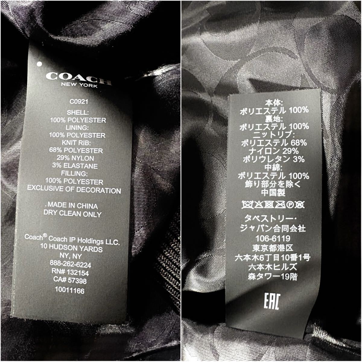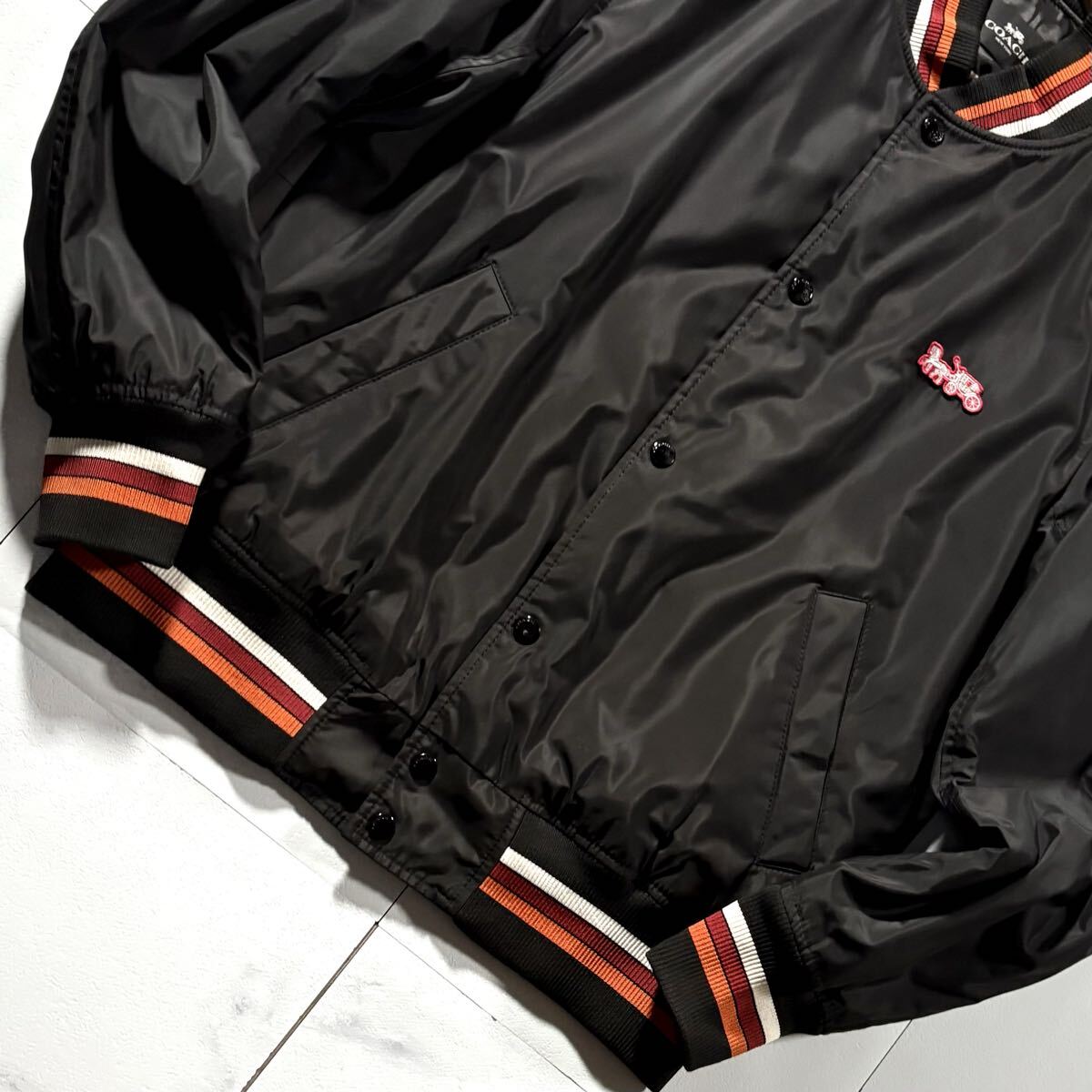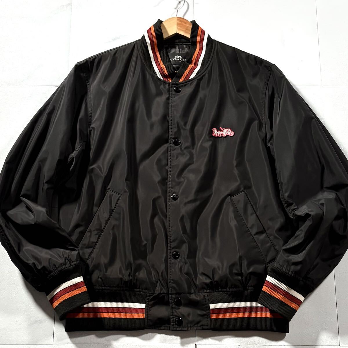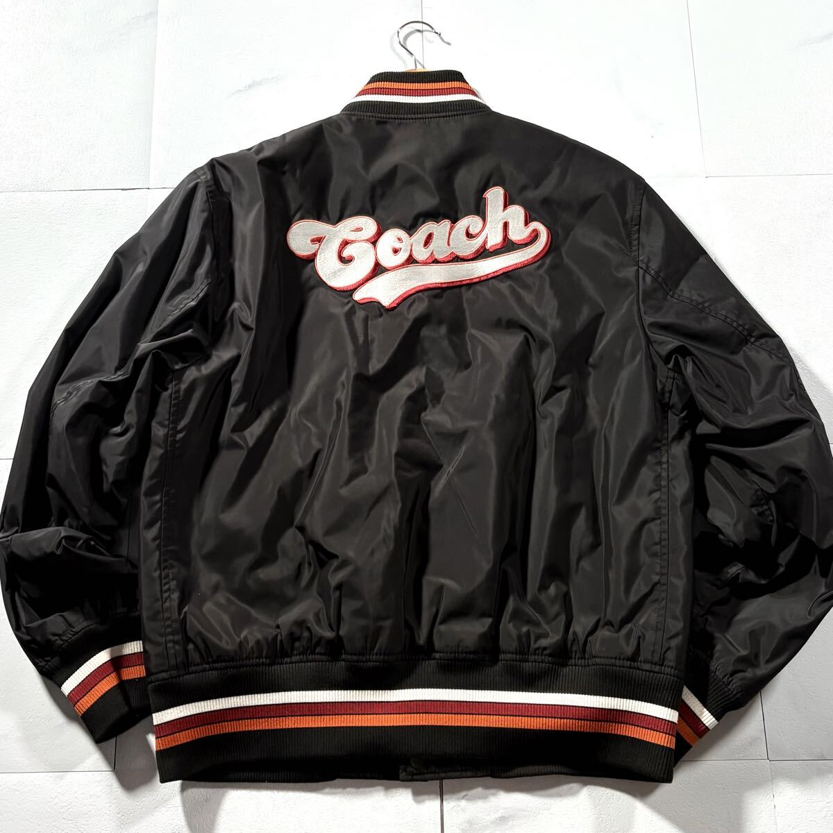 極美品/XLサイズ相当●近年モデル COACH コーチ スタジャン 中綿 ナイロン ジャケット アウター 裏地シグネチャー CC柄 総柄 背面ロゴ 黒