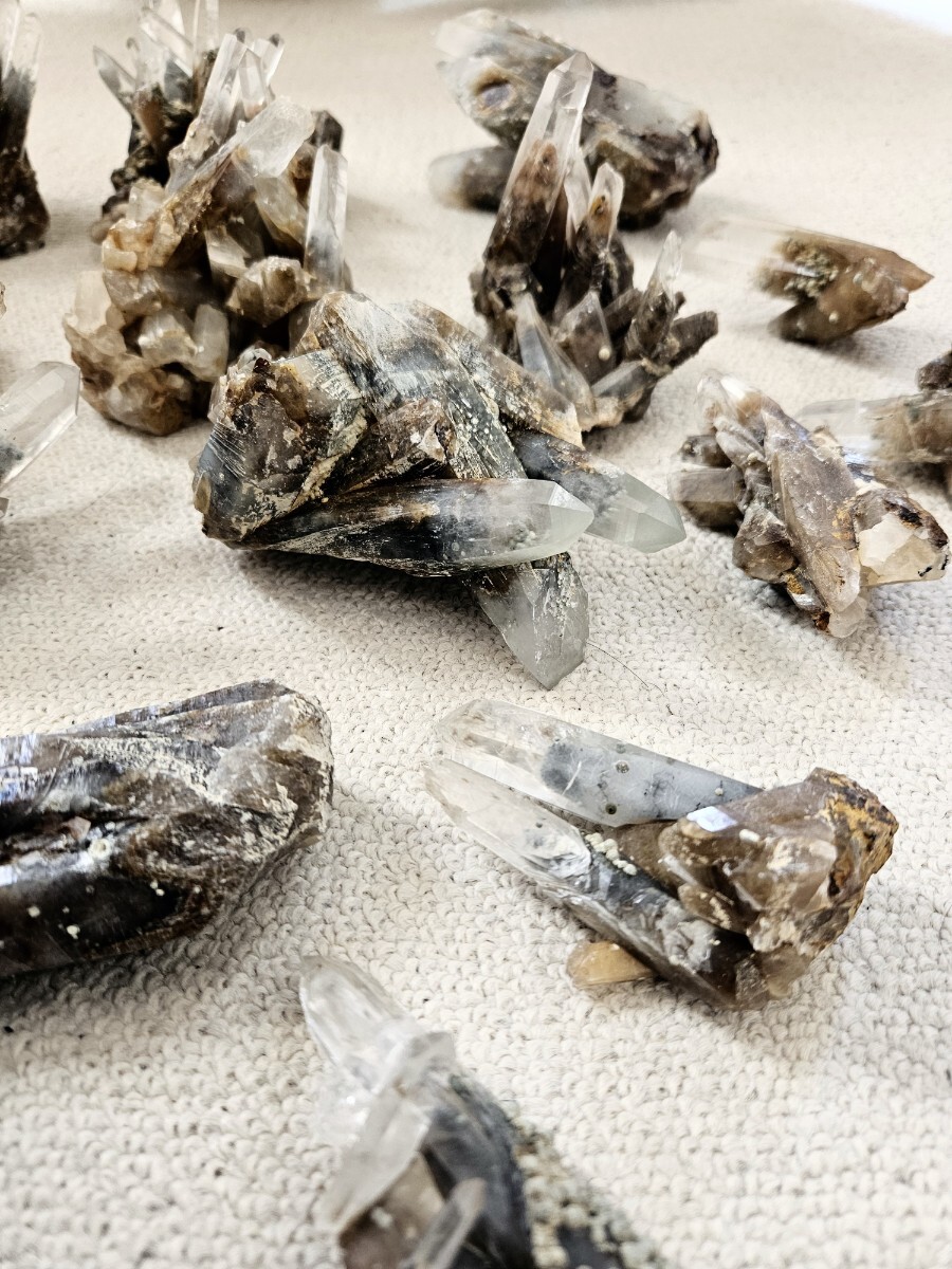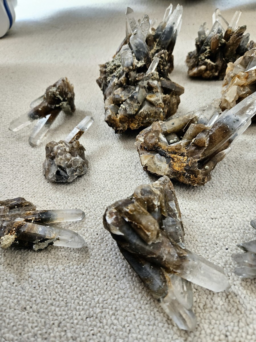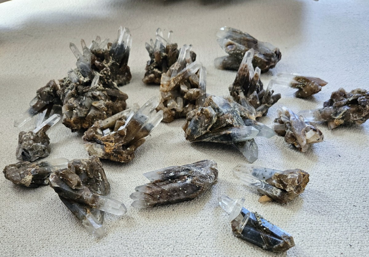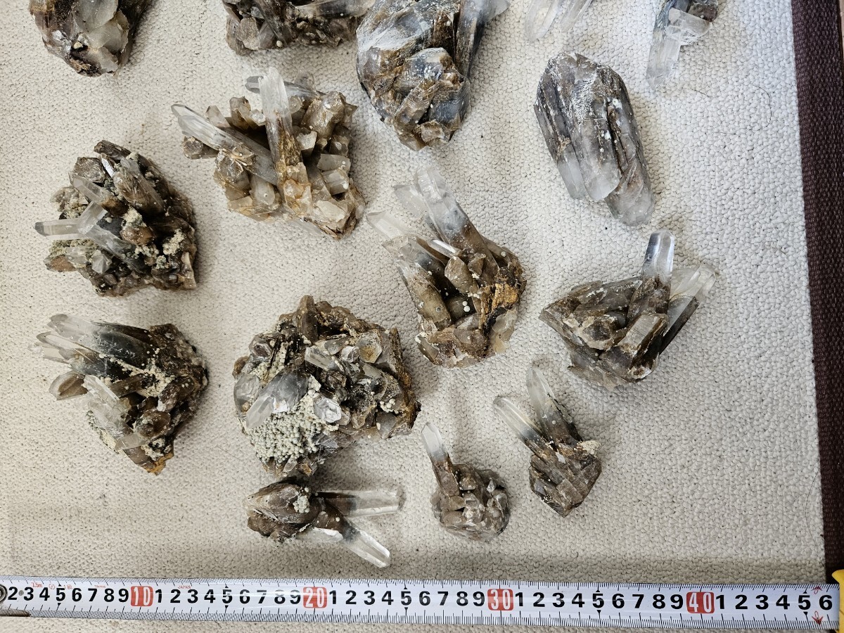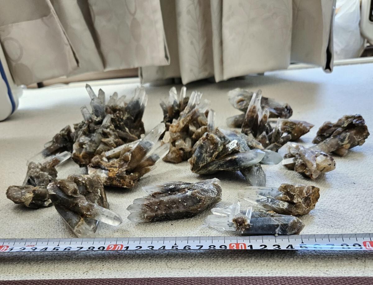 国産 マリモ入り水晶 クラスター 18個 原石 鉱物 尾平鉱山 コウモリ坑