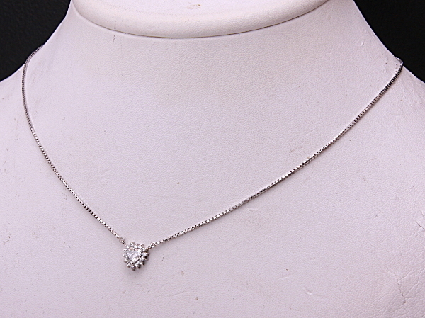 《質屋》Pt850/900★ハートシェイプ天然ダイア0.33ct+0.16ctペンダントネックレス★C-5270