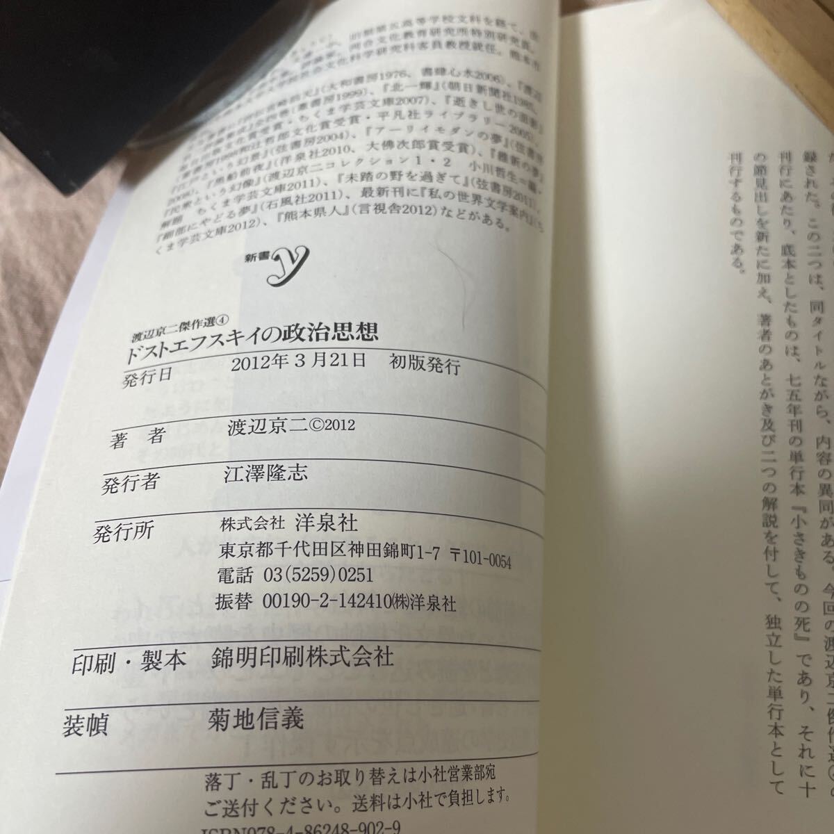 渡辺京二傑作選④ ドストエフスキイの政治思想 渡辺京二 帯付き 初版 2012年 新書y 洋泉社