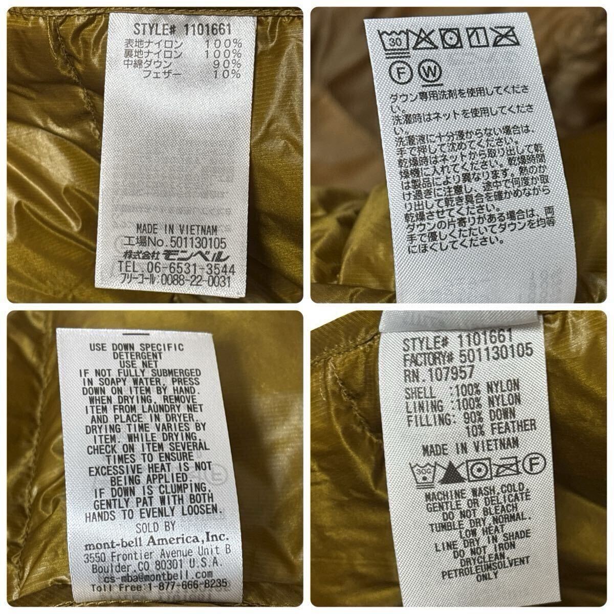 未使用級!!! montbell モンベル ダウンジャケット Lサイズ 1101661 キャメル 軽量 高品質ダウン 防寒 アウトドア 希少カラー レア 登山